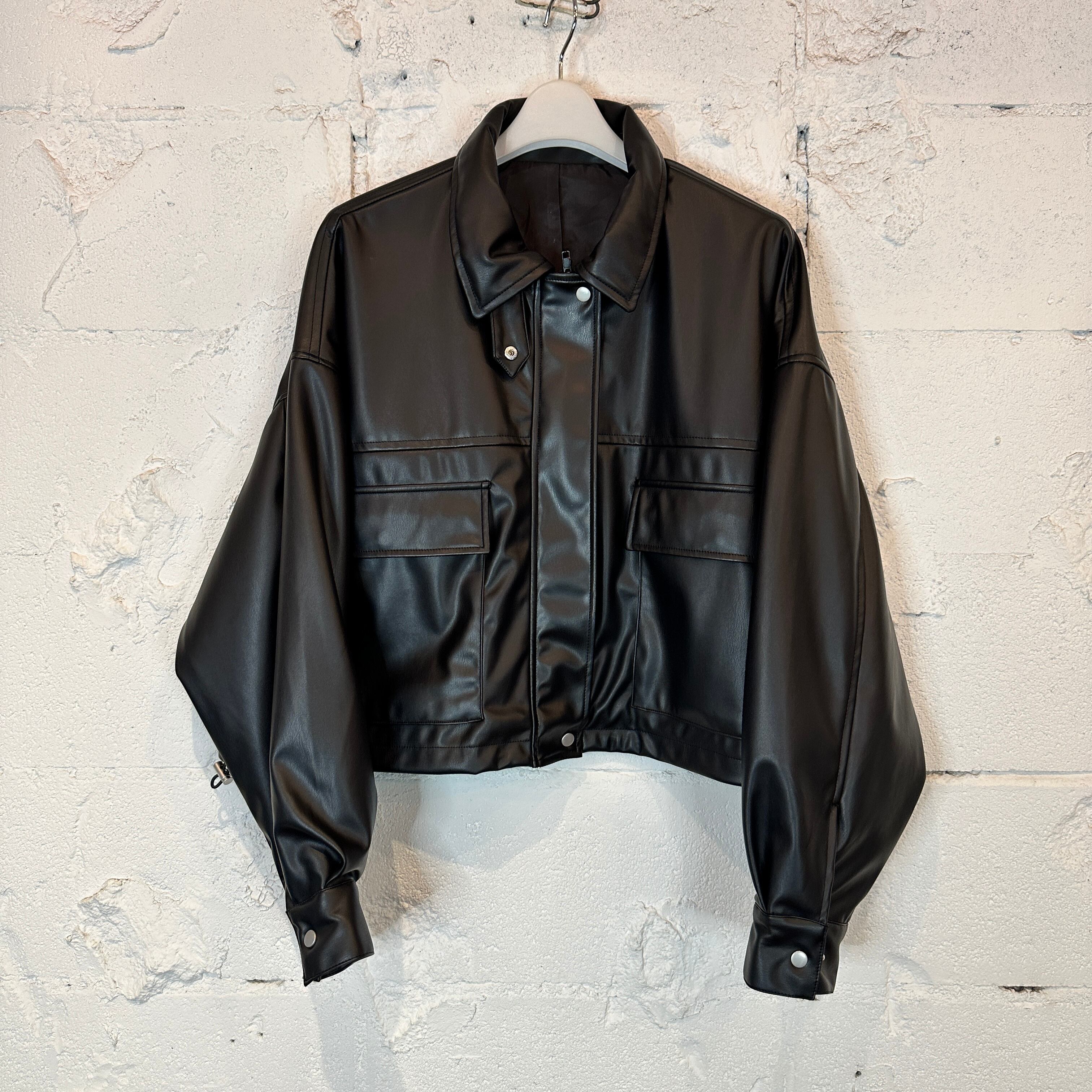 Ladies'裾ドロスト合皮ジャケット | GLOVEEEK https://thebase.com/to/item?item_id=100804351