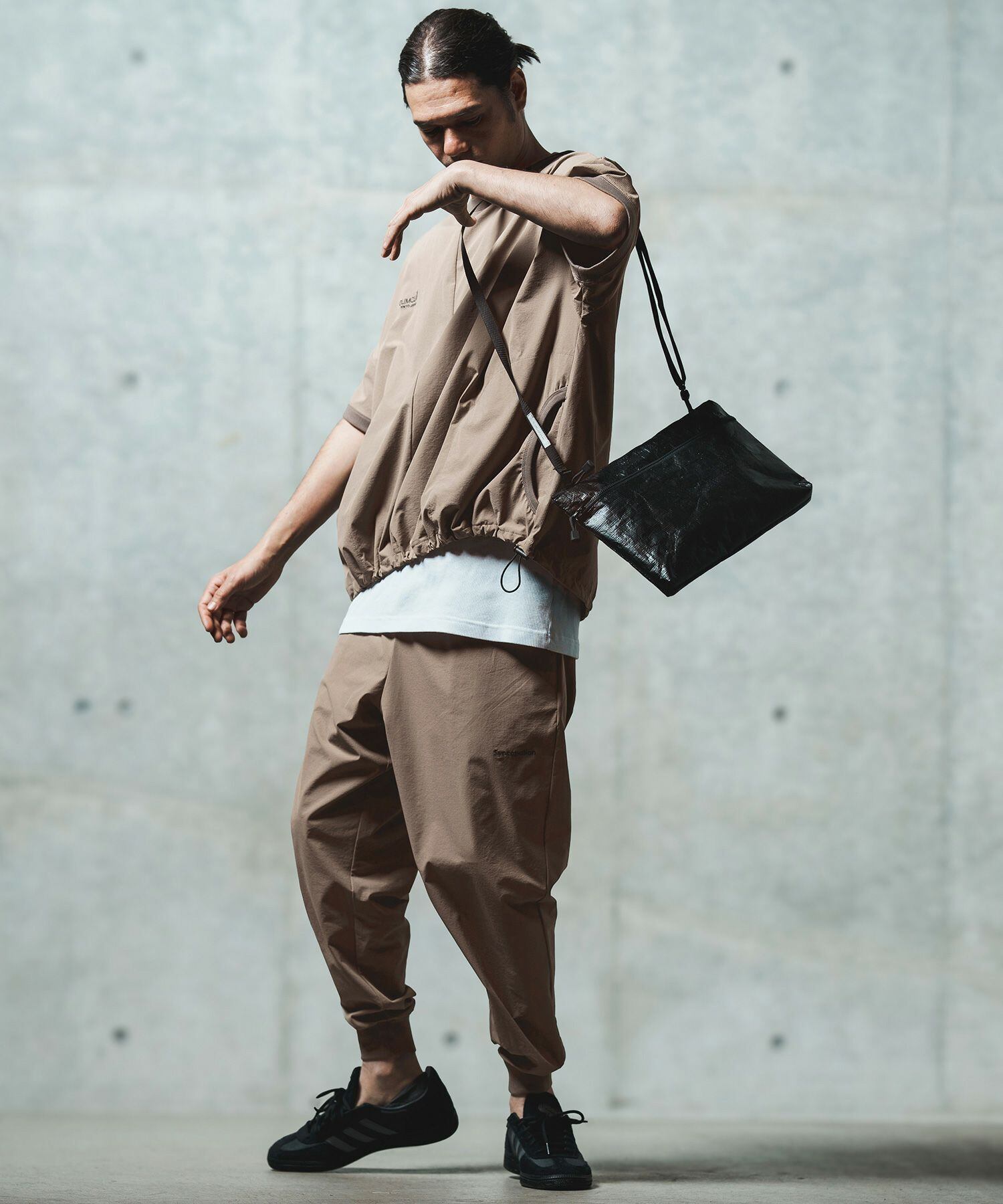 同素材のトップス「Mini-ripstop nylon fabric short-sleeve pullover(18-043-gls-cf)」、も展開していますので、セットアップスタイリングも可能です。