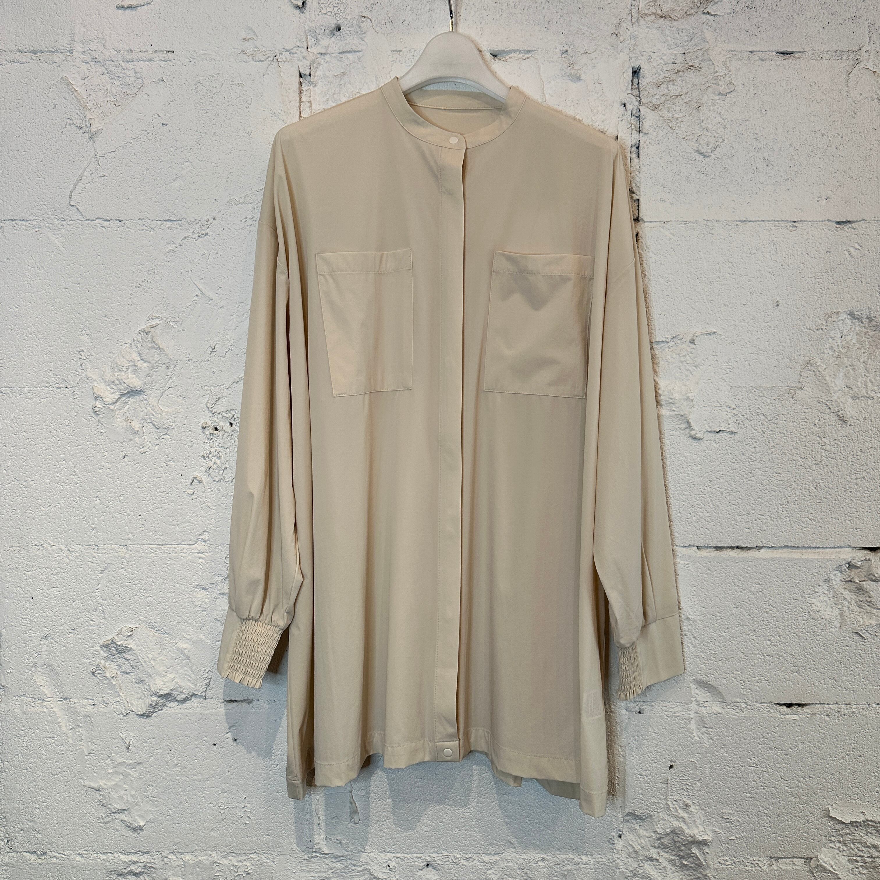フロントポケット付き、袖口にはシャーリングゴム入りで、
