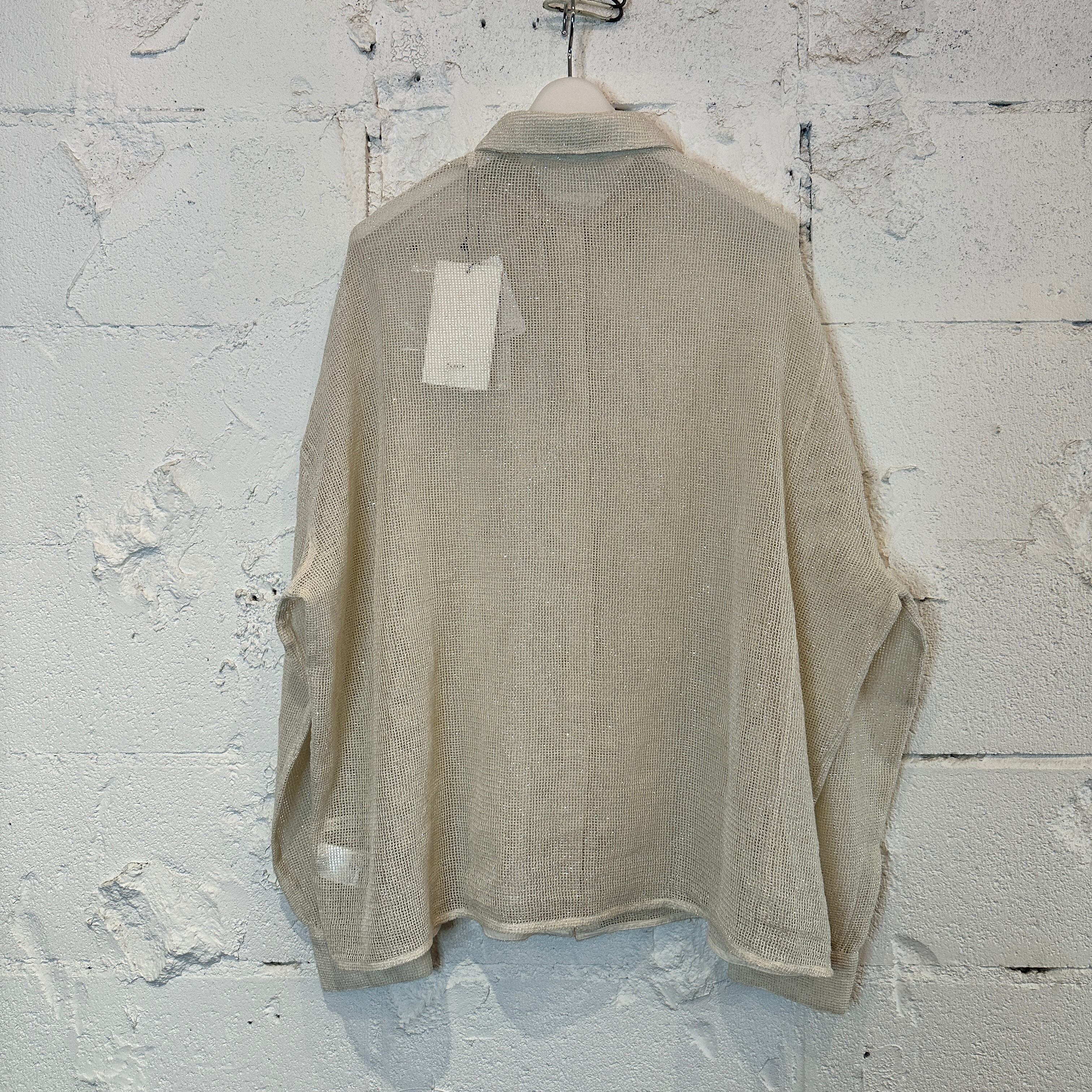 ワードローブの定番である、オーバーシャツを旬なラメ入りメッシュでアップデート。