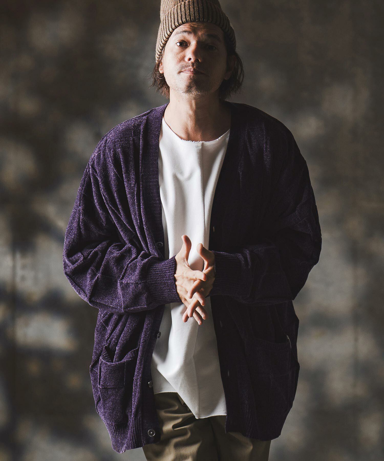 effectone#高円寺#GLOVEEEK#GLIMCLAP Cardigan sweater-Chenille yarn & Grid pattern-(19-018-gla-cf)9/上~中旬ご予約ページ