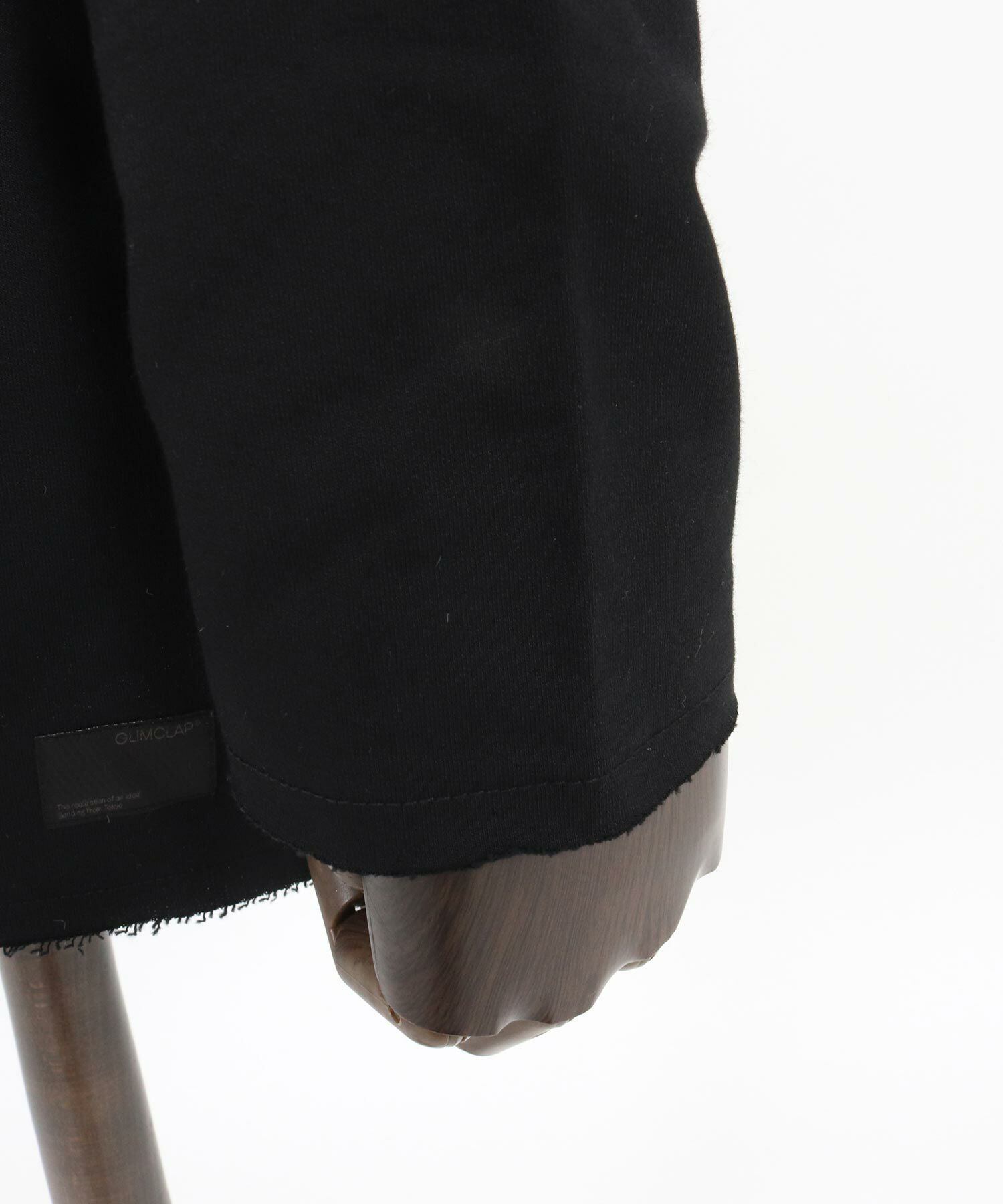 首周り、袖口、裾口は、切りっぱなしのカットオフ仕立てでラフなイメージを加えた個性的なディテールワーク。