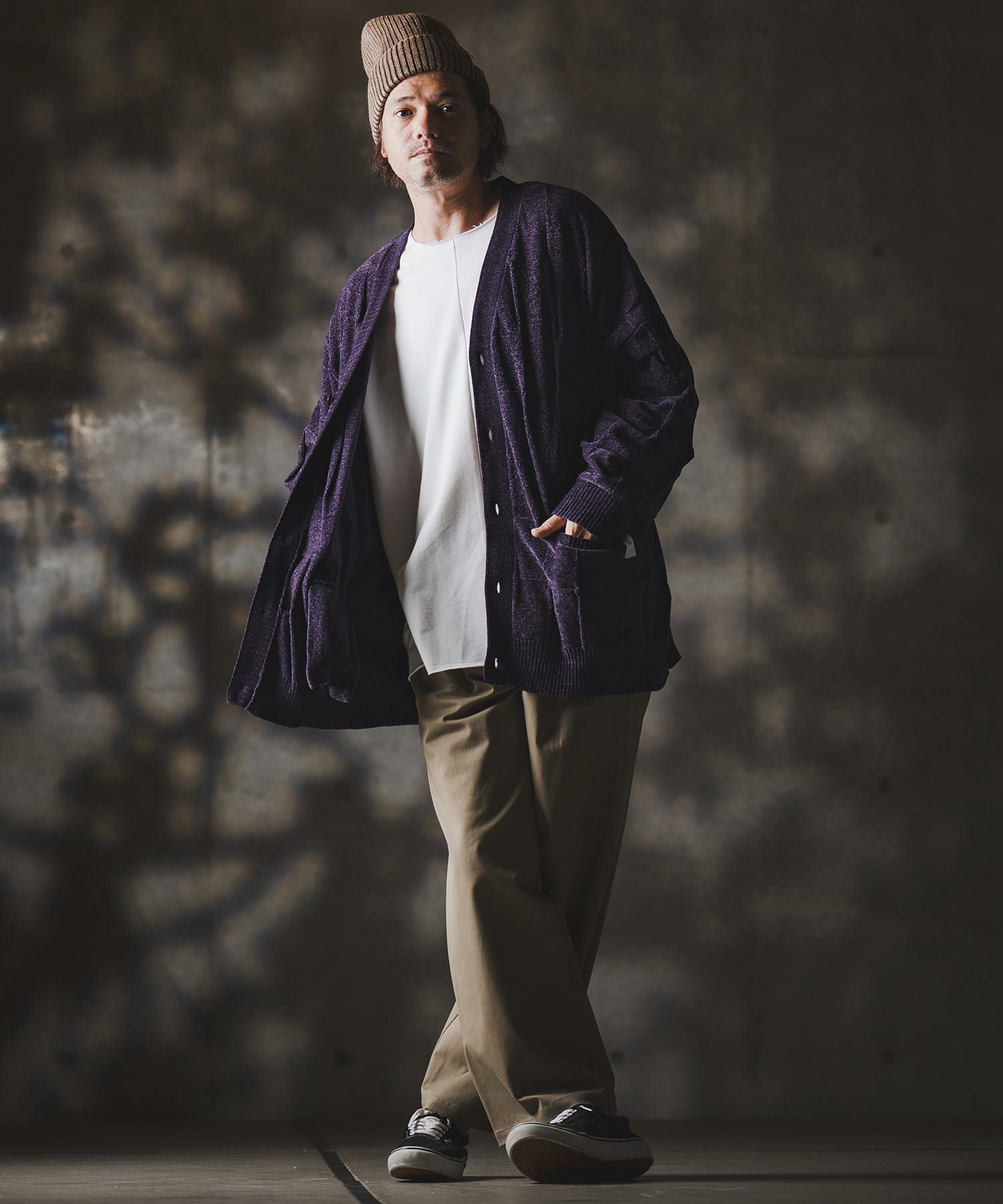 オーバーサイズのたっぷりしたシルエットが、ほんのりトレンドを感じるGLIMCLAPらしいこなしです。