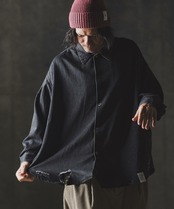 台襟、前立てを作らないディテールで制作したシャツ、シンプル&ミニマルな全体フォルム仕上げ。