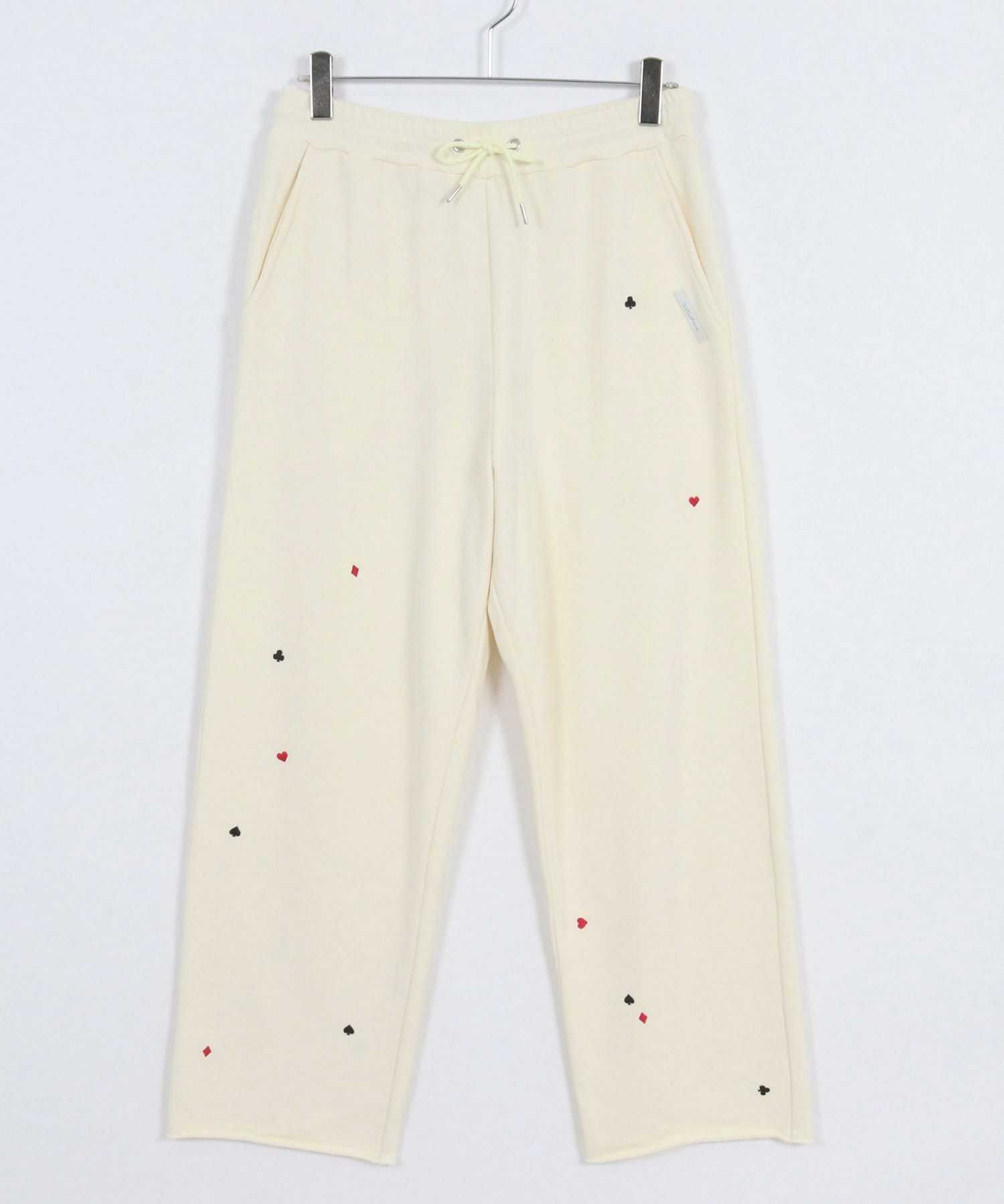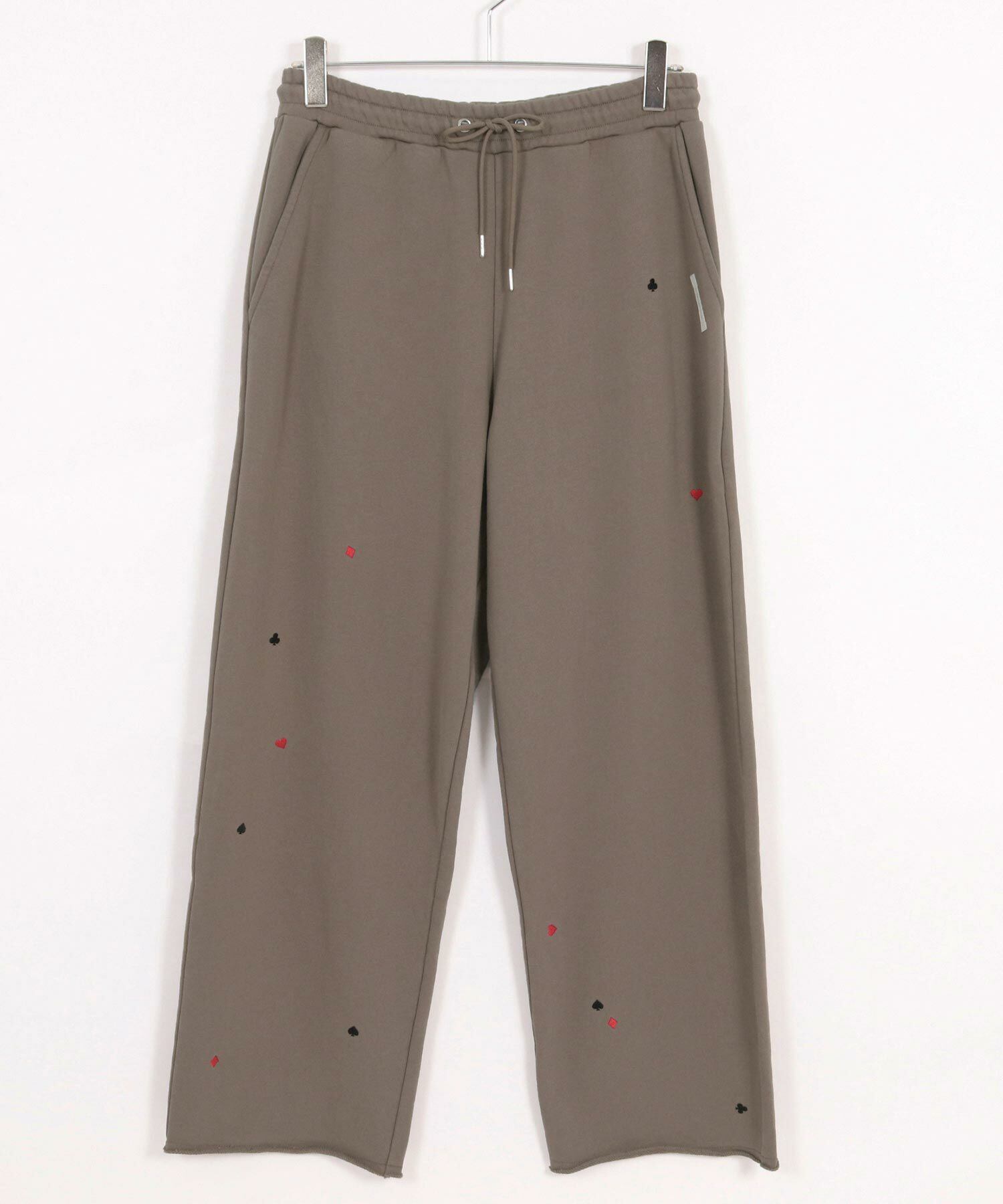 遊び心を刺繍で表現したスウェットパンツ。