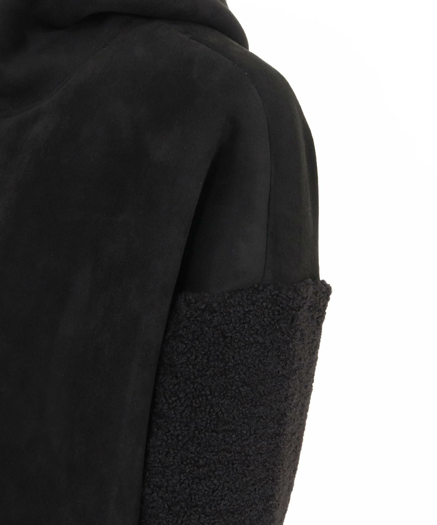 身頃にフェイクムートン、袖にシープボアを配した異素材切り替えデザイン。
