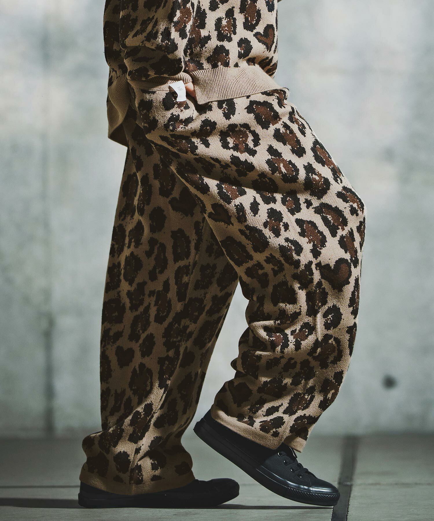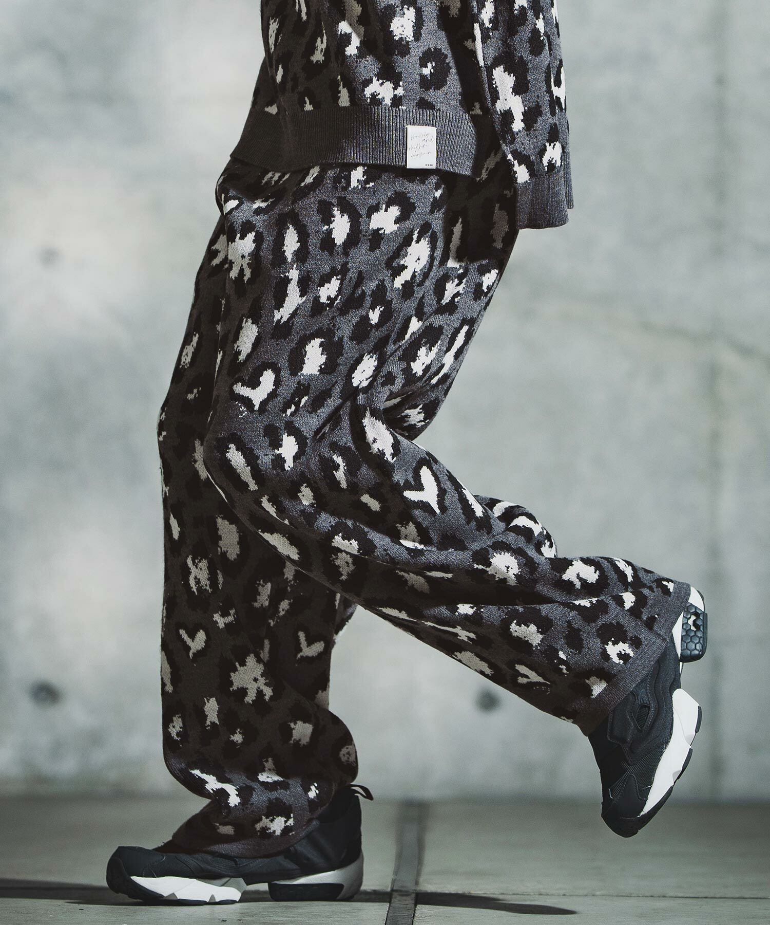 レオパード柄をダブルジャカードで編み込んだニットパンツ。