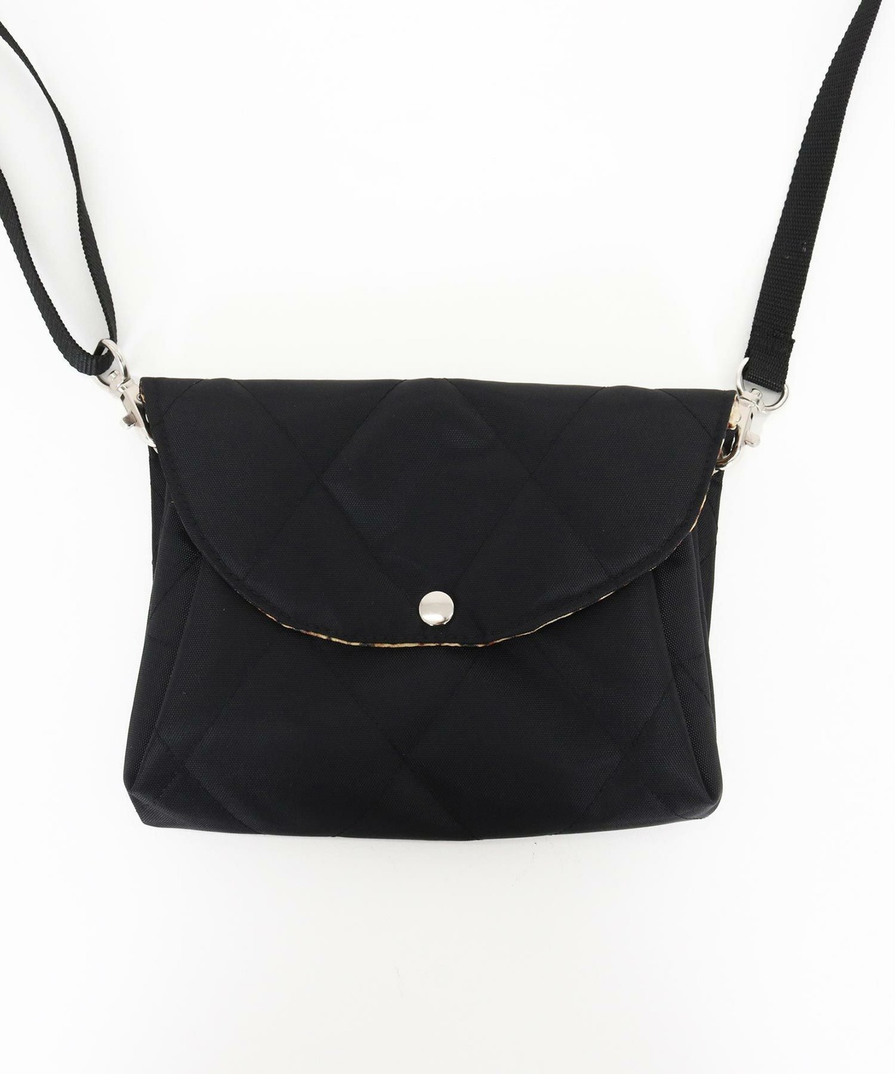 ダイヤキルトの質感とレオパード裏地が映えるバッグ。
