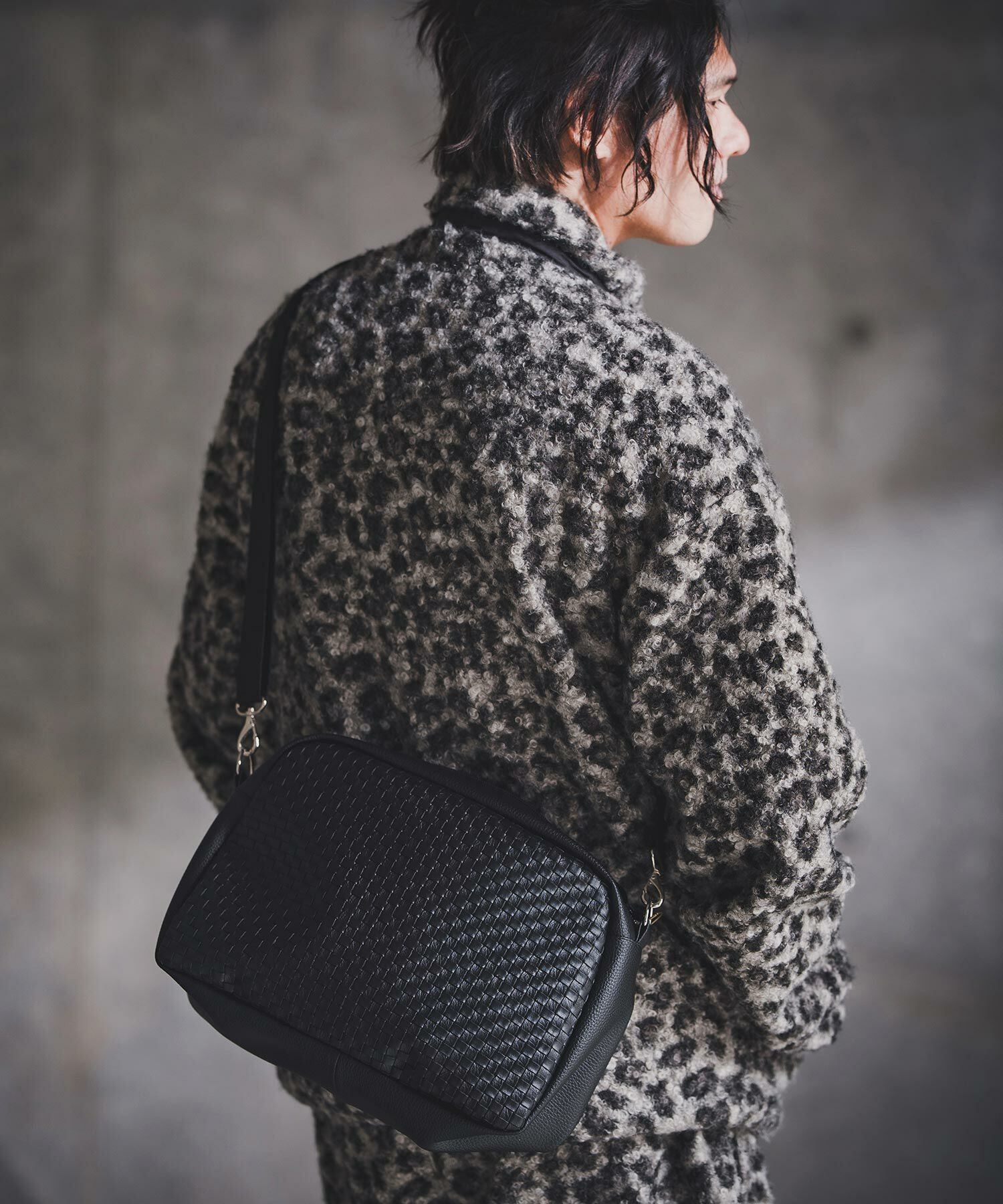 編み込み型押しの合成皮革を使用した程良い存在感と、便利な収納性を兼ね備えたデイリーユースなアイテムです。