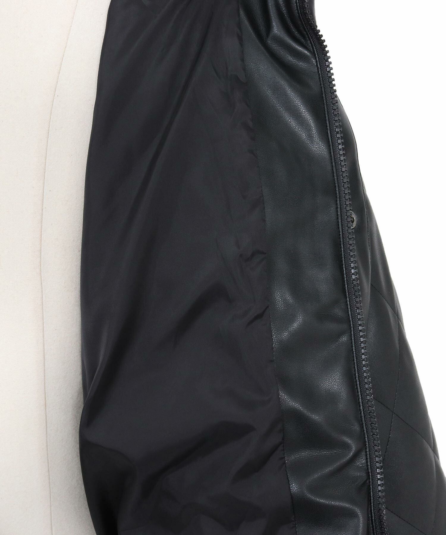 ミリタリー由来のWEPジャケットをベースに、シンセティックレザーとダイヤキルティングで再構築。