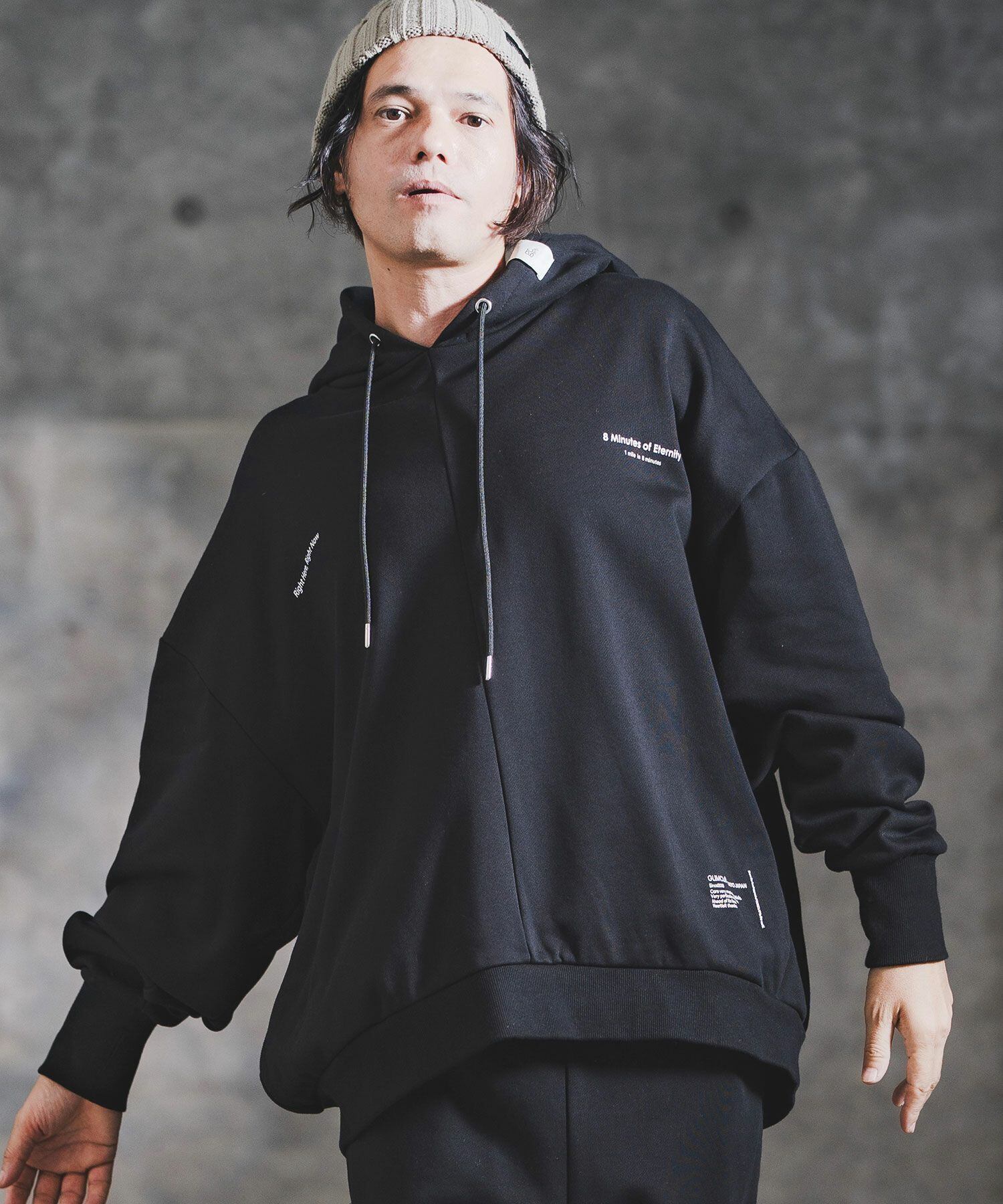 ミニマルな佇まいに、さりげないアイキャッチを散りばめたスウェットフーディー。