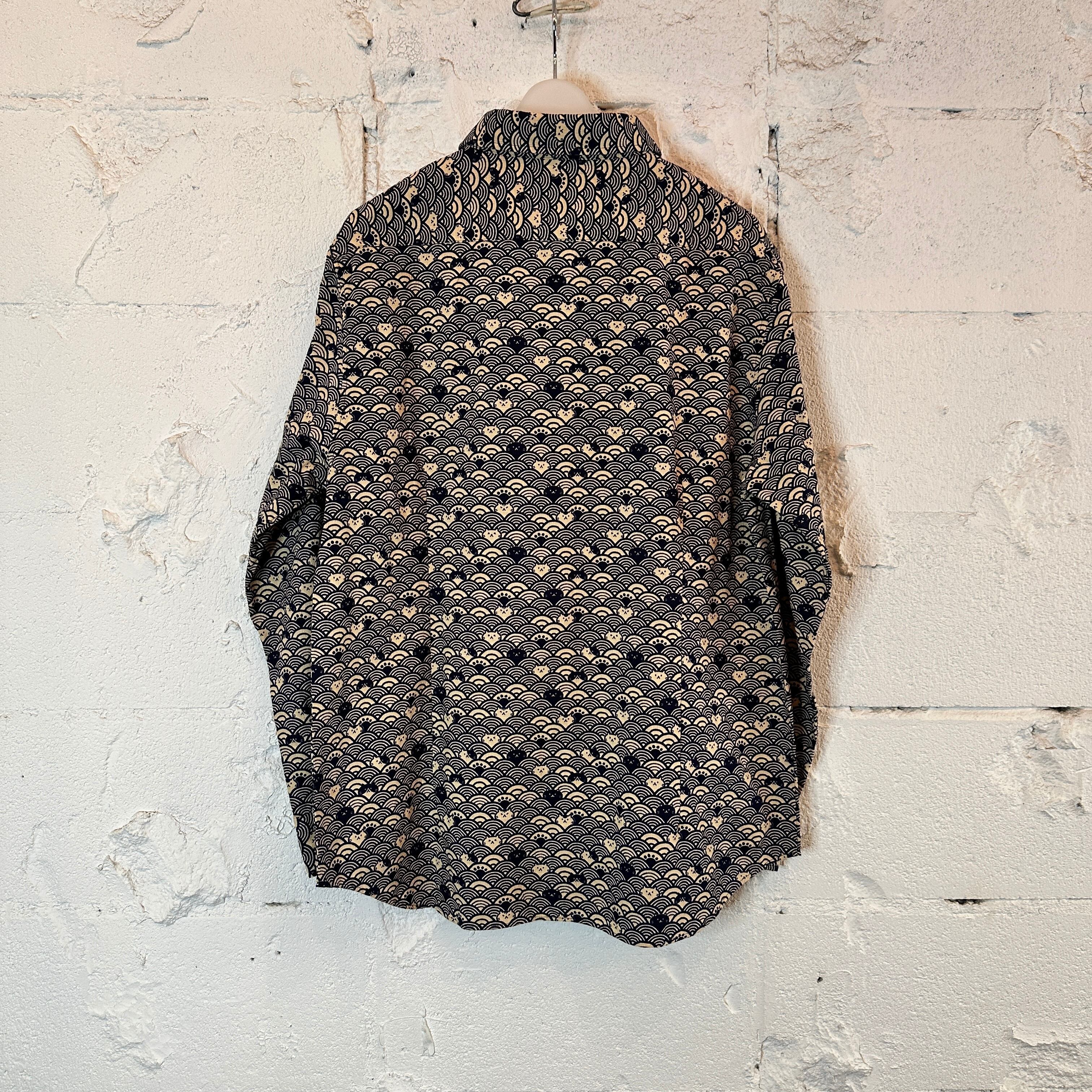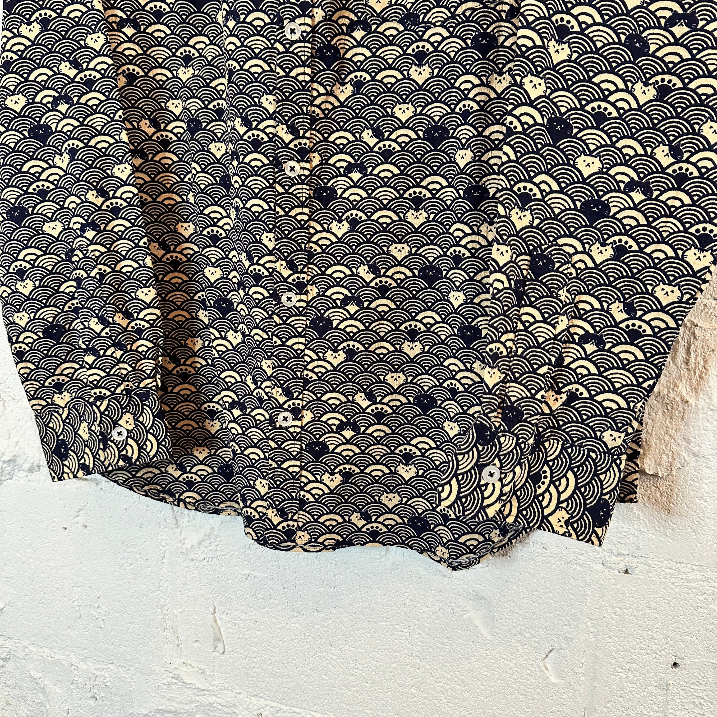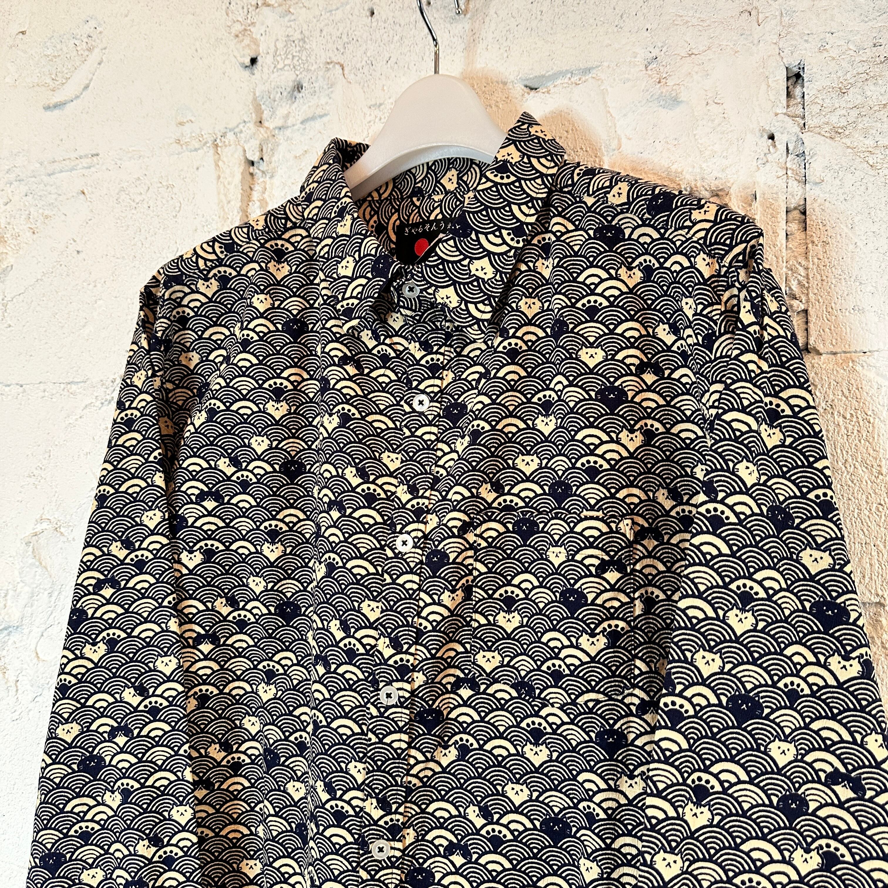 日本製猫青海波柄レギュラーカラー長袖シャツ(MADE IN JAPAN)