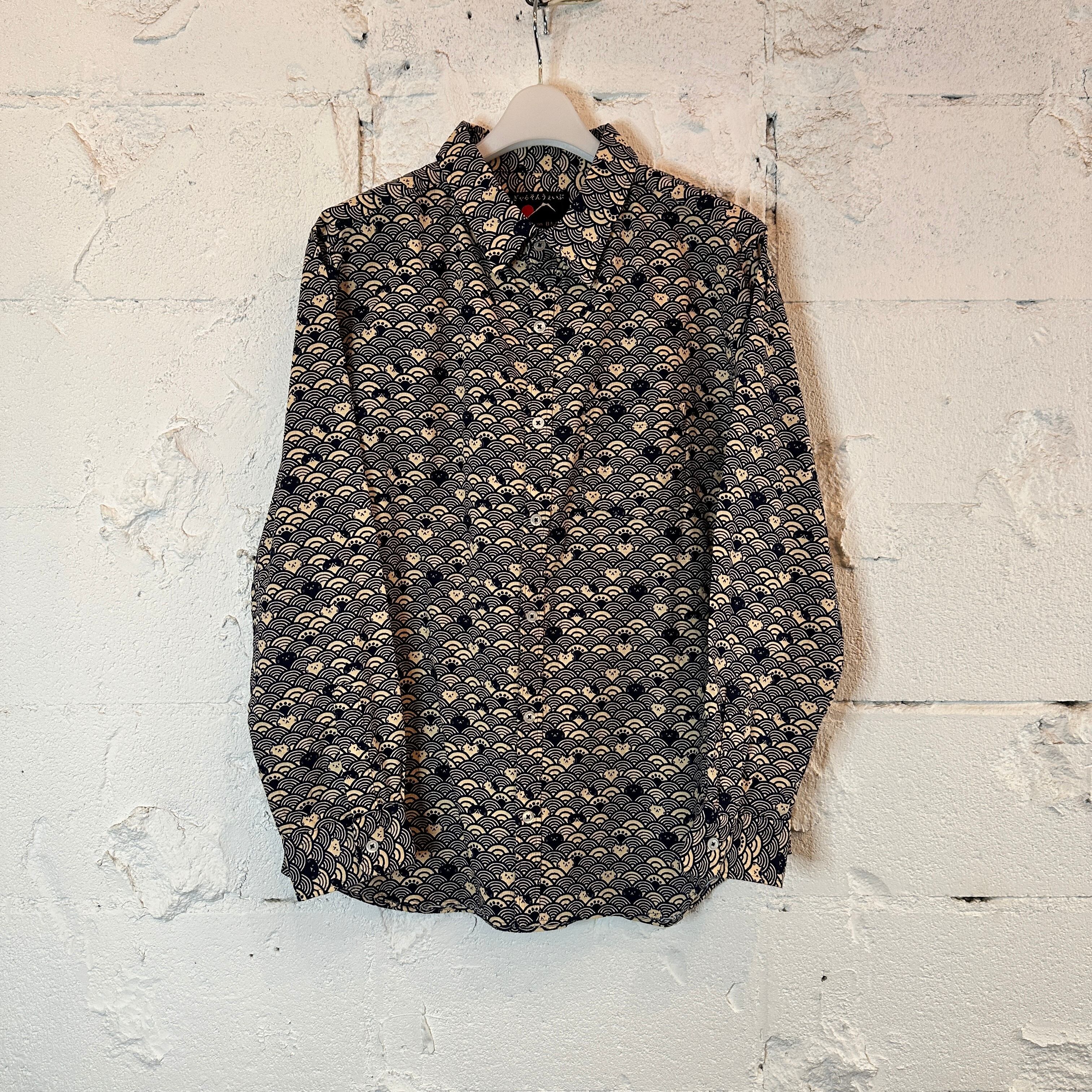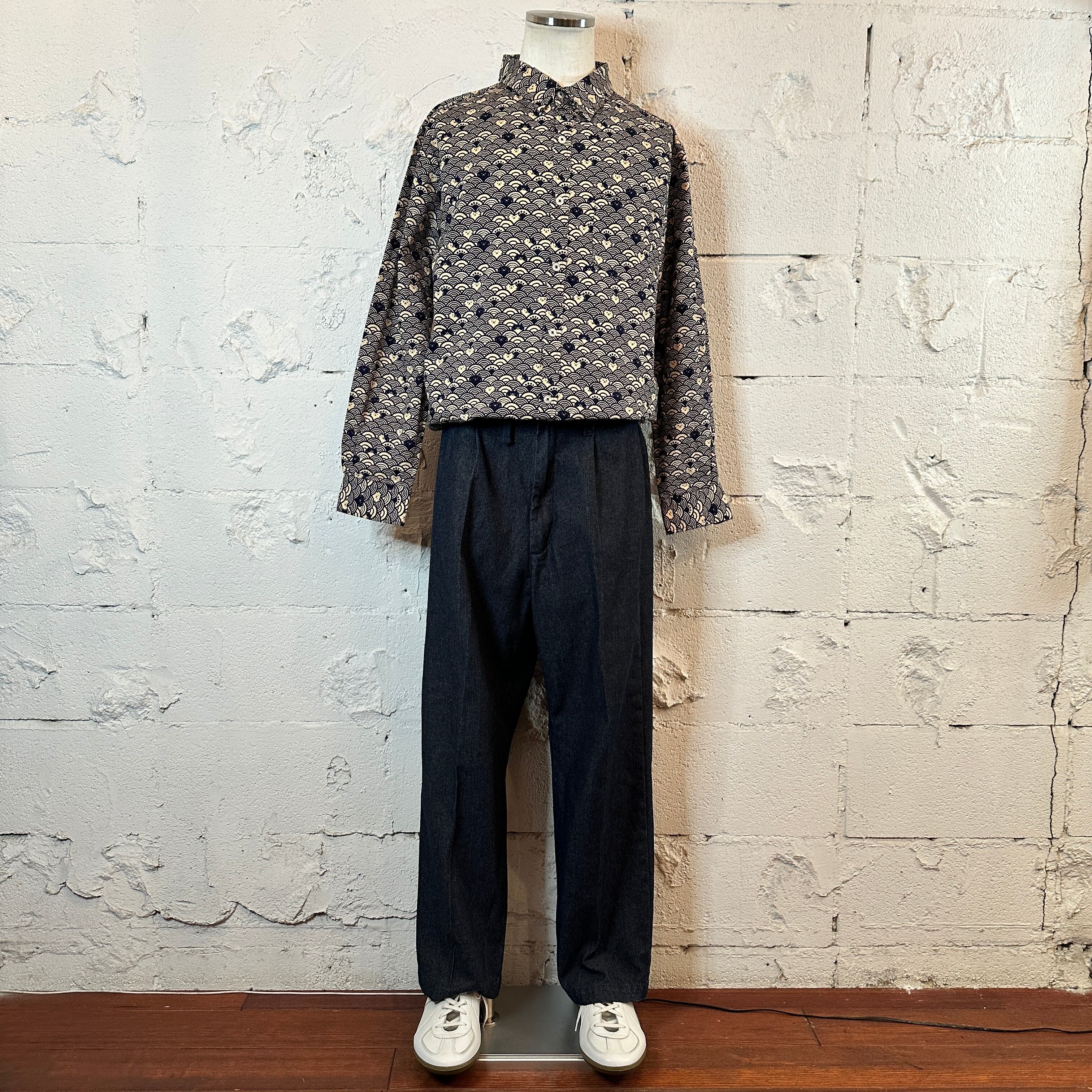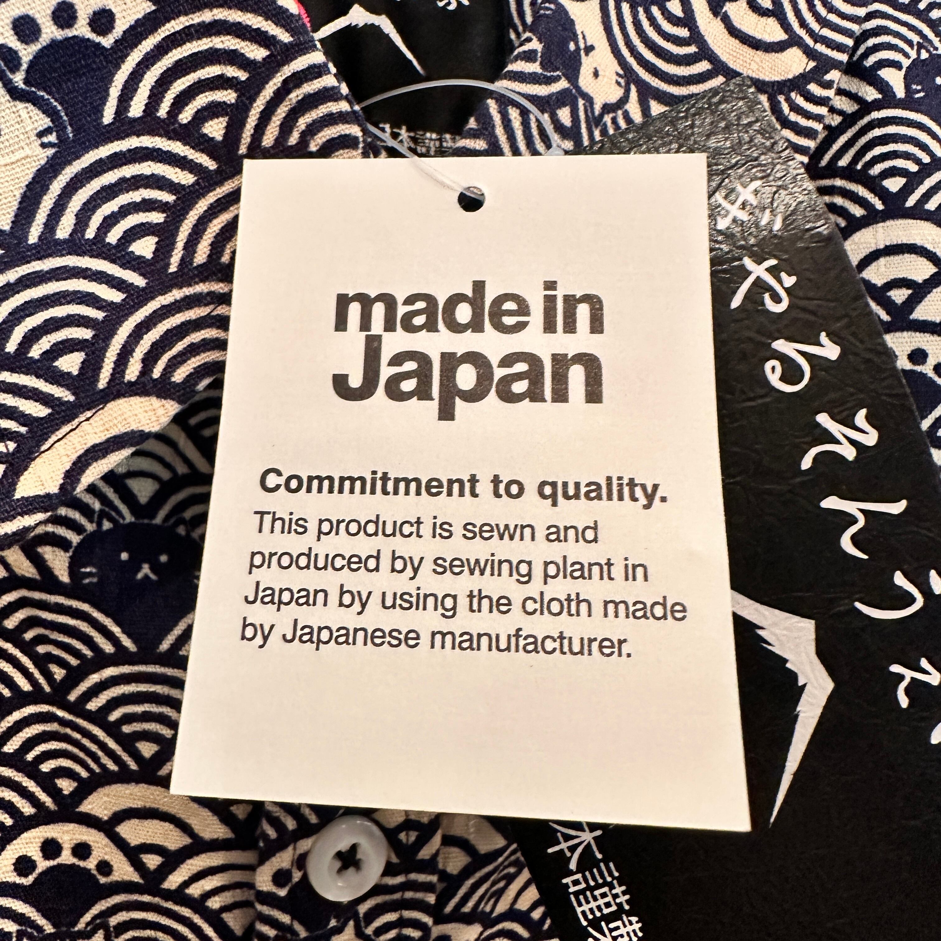 日本製猫青海波柄レギュラーカラー長袖シャツ(MADE IN JAPAN)