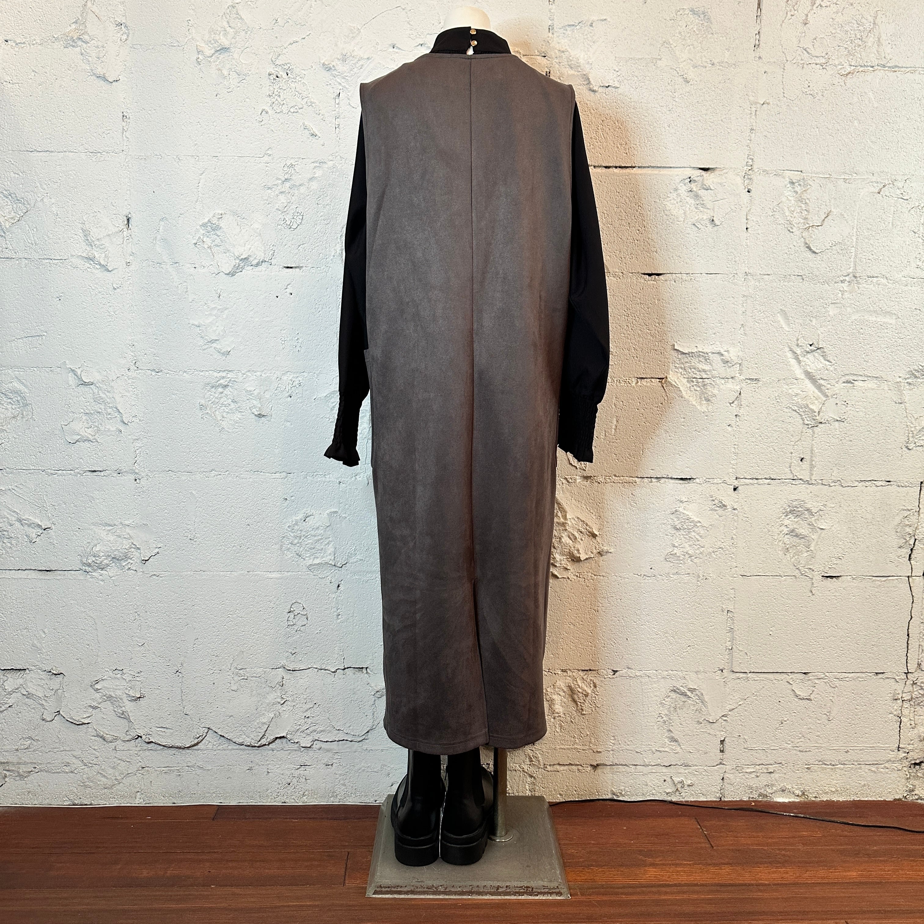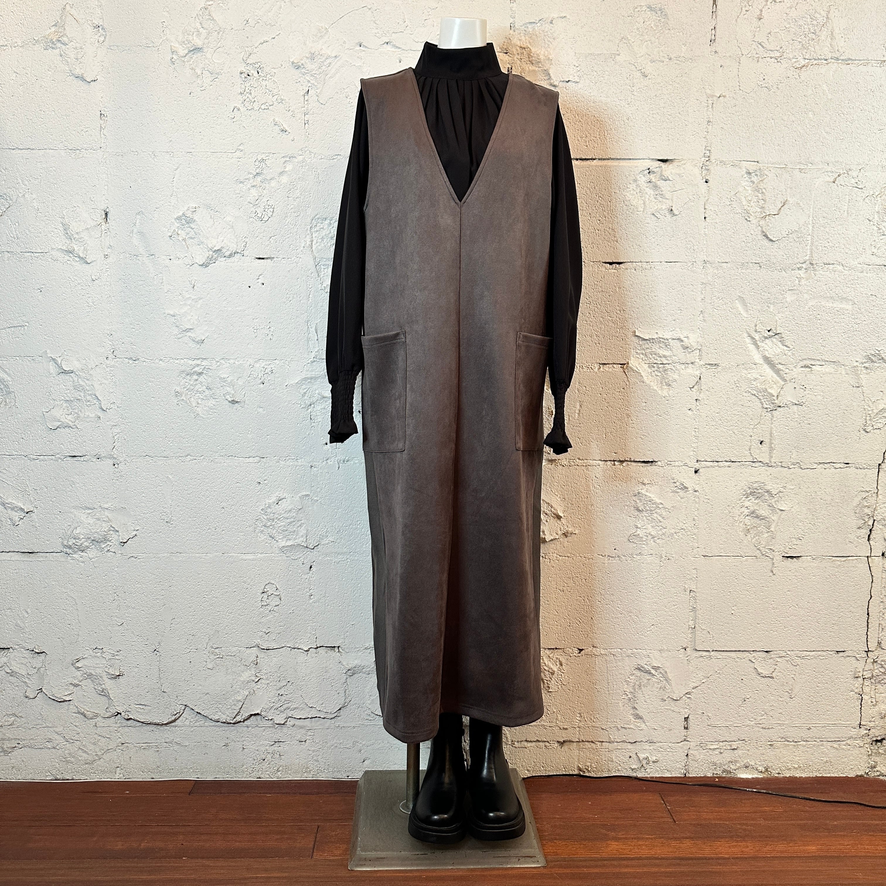 襟周りのタックから裾へと流れる美しいドレープが、女性らしいシルエットを自然に演出します◎