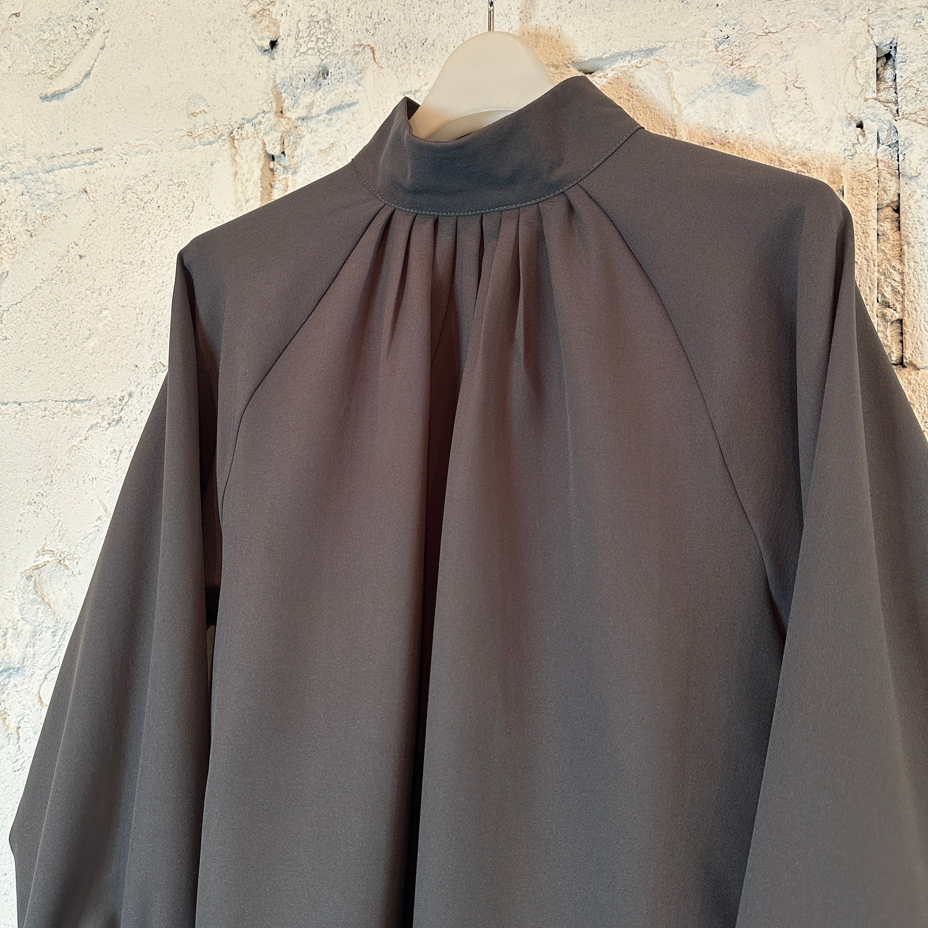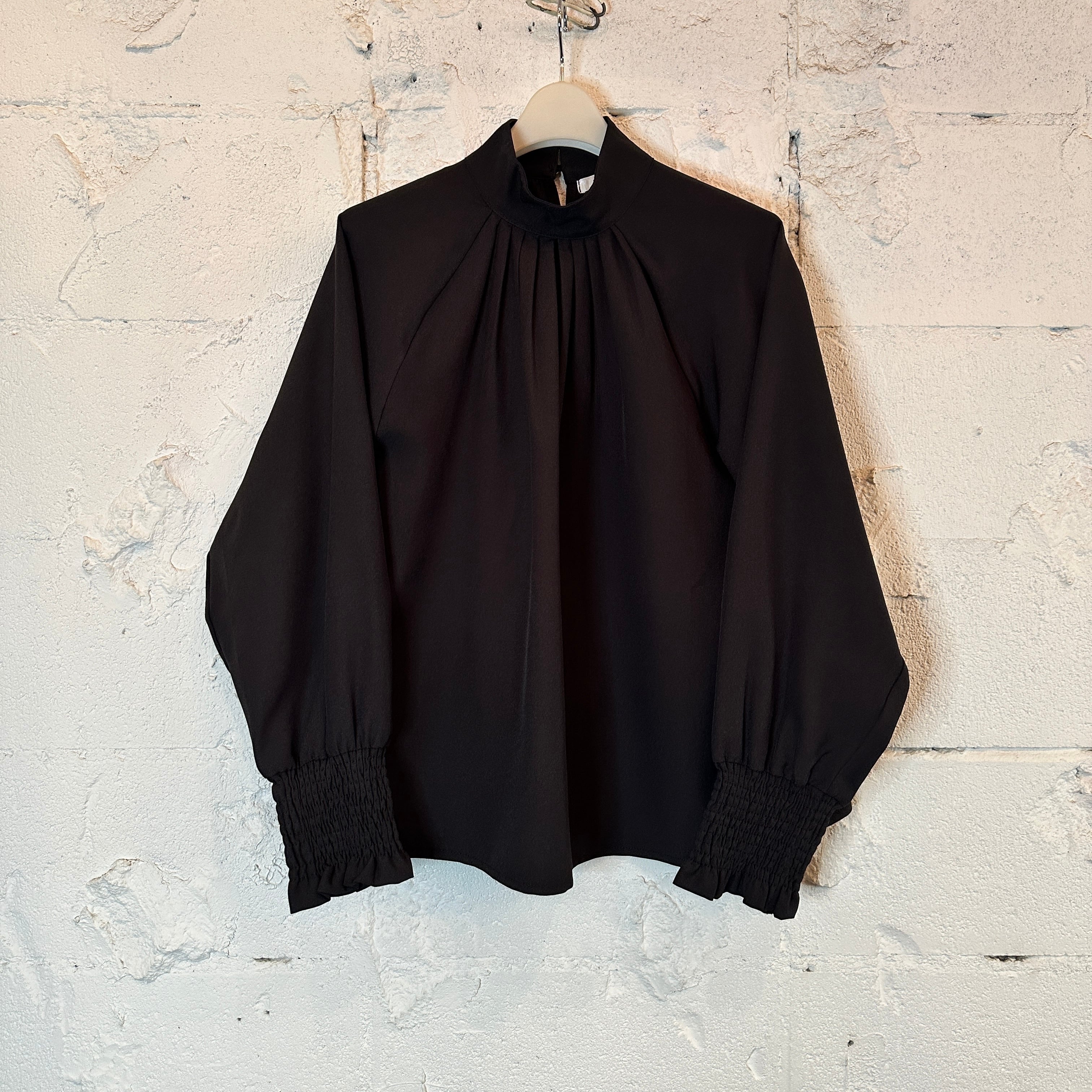 襟元に施したタックディテールと、袖口の幅広シャーリングがさりげないフェミニンさを引き立てるタックブラウスです☆