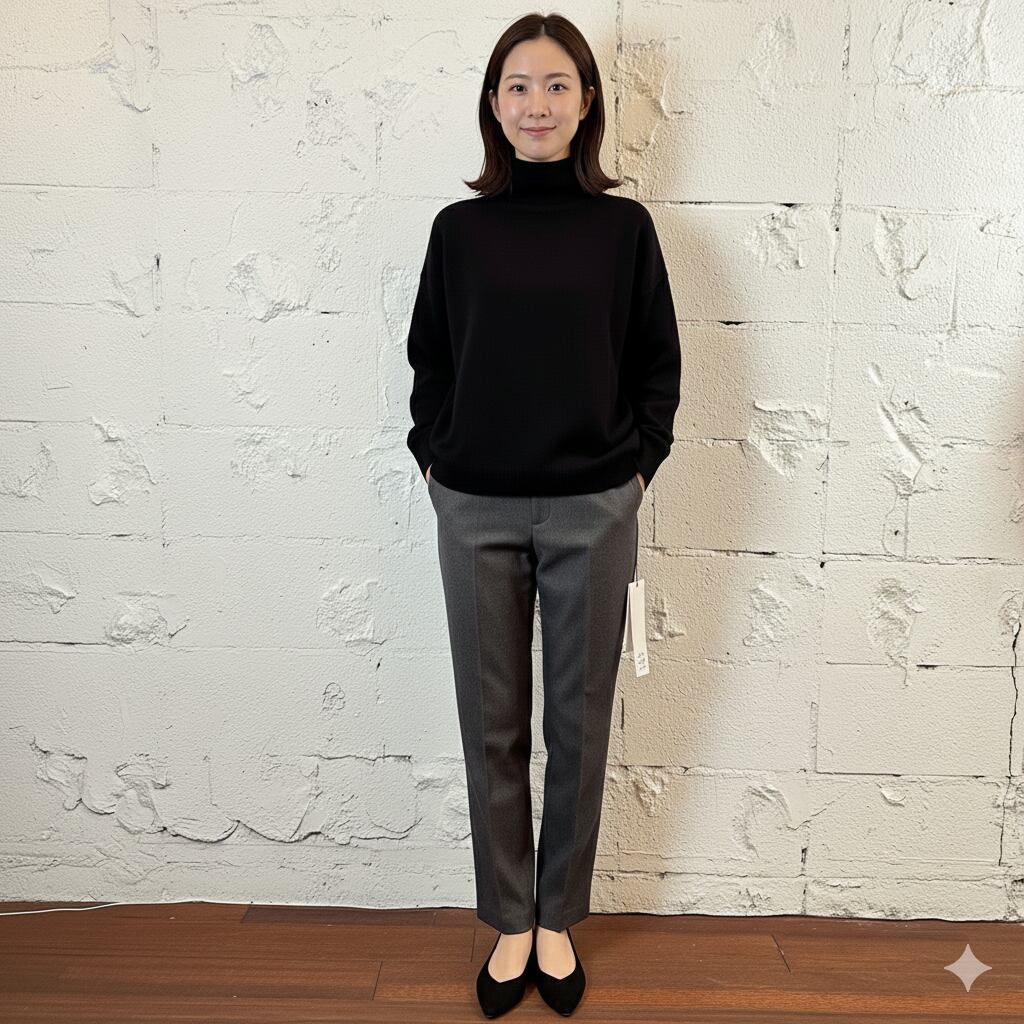 程よく首にフィットするタートルネックがポイントのドルマンニット。