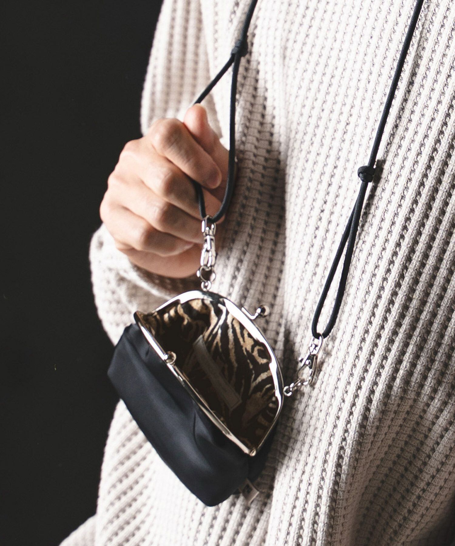 ウォレットのようなガマ口デザインをそのままミニバッグに落とし込んだデザイン。