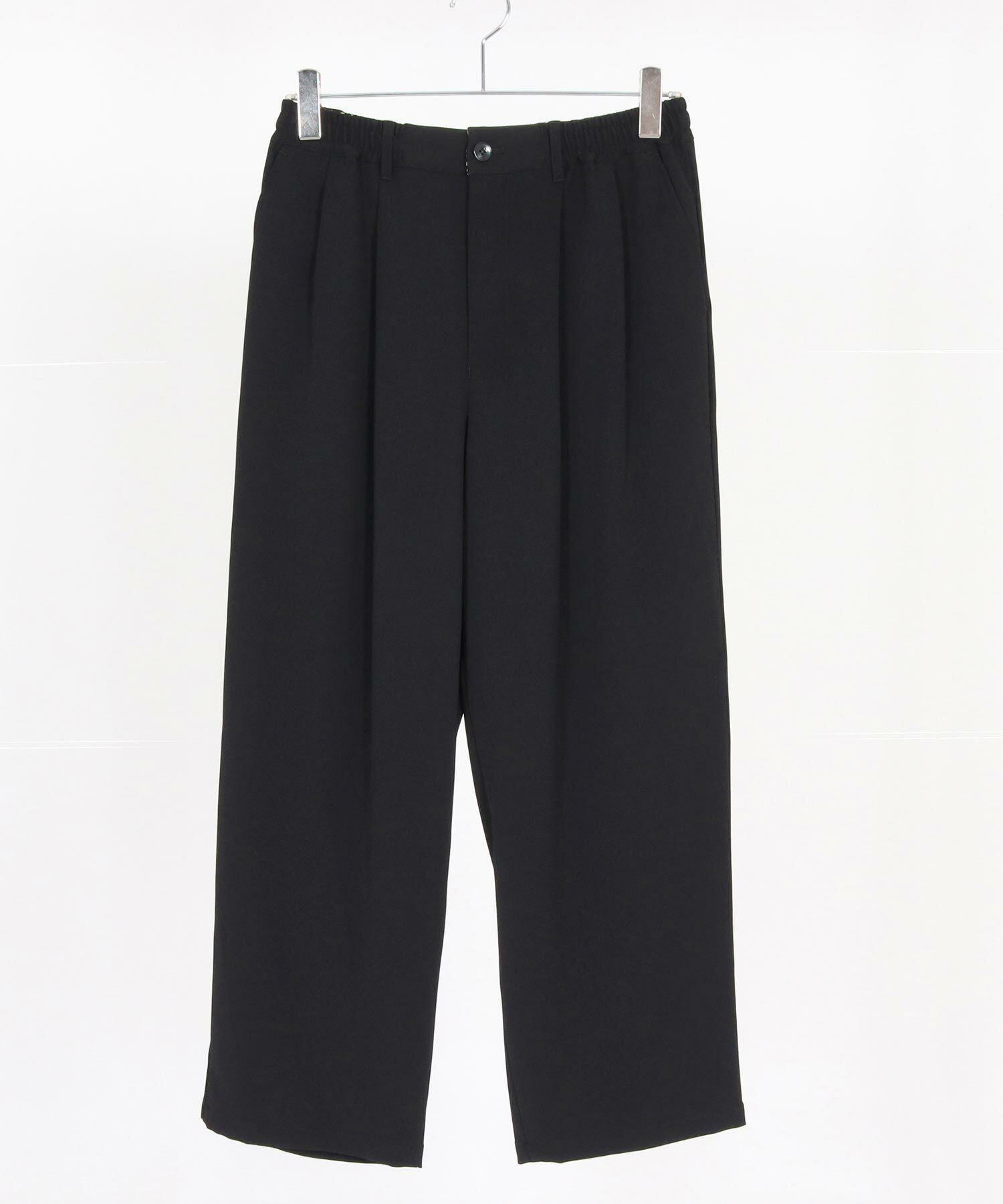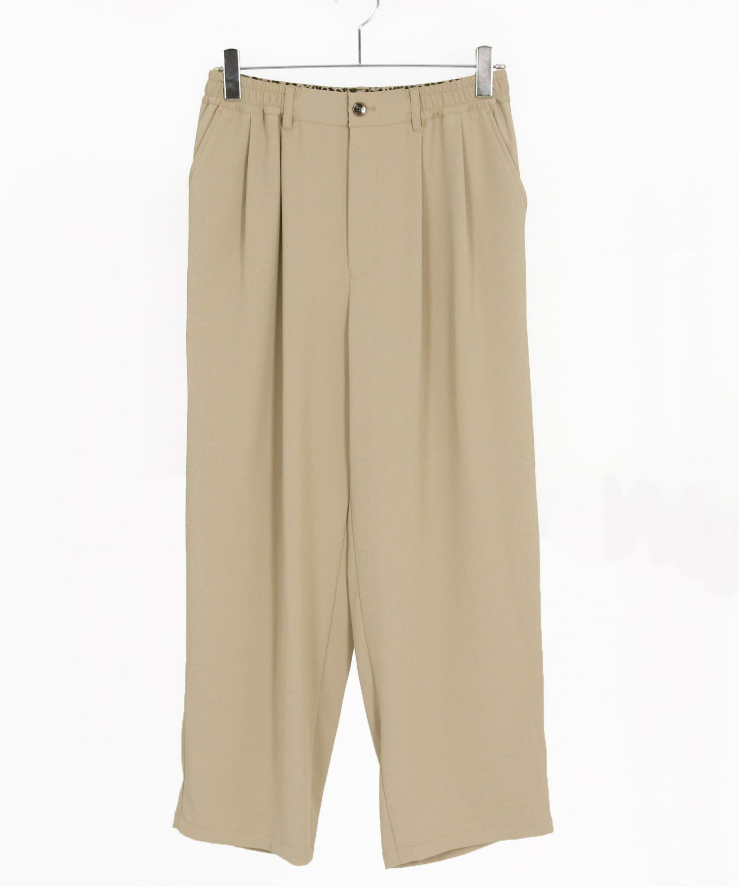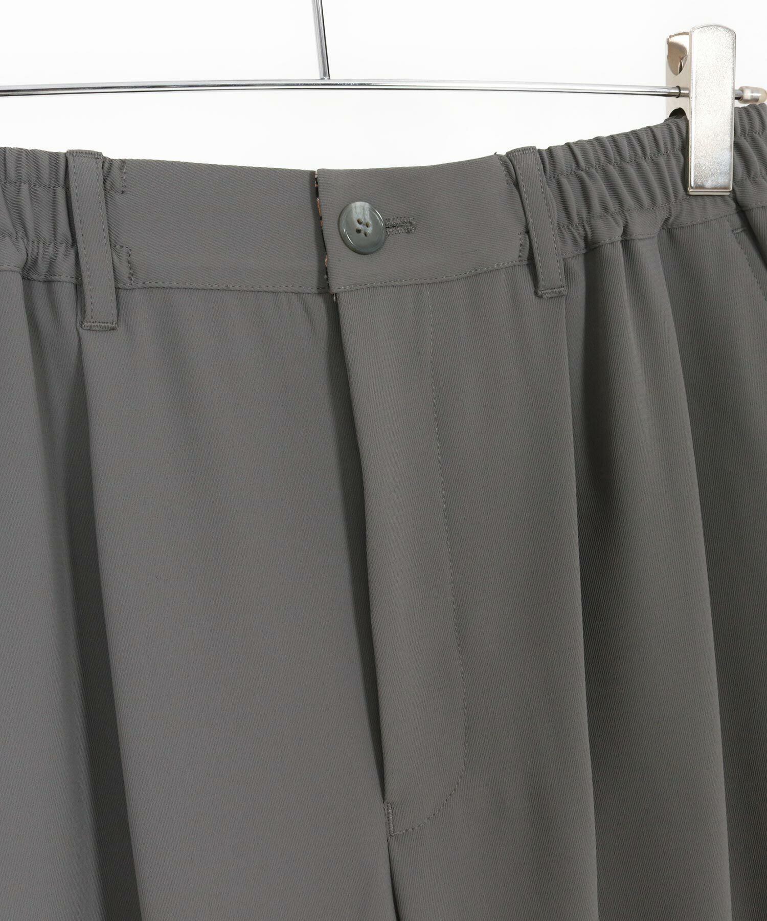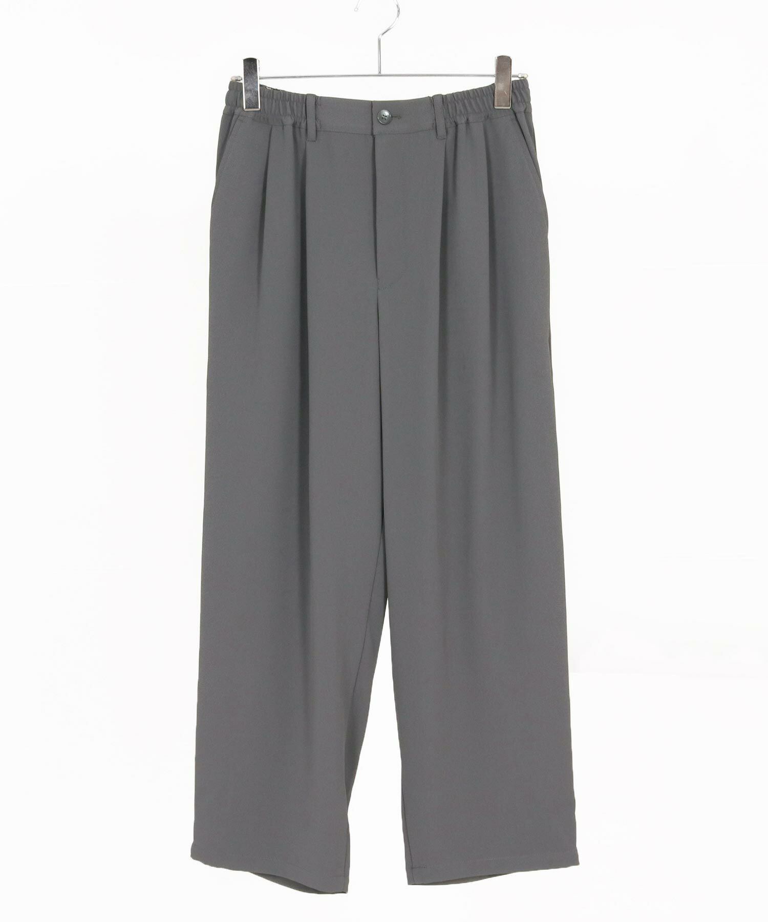 しなやかな風合いのポリエステルクロス素材を使用した、ワイドストレートパンツ。