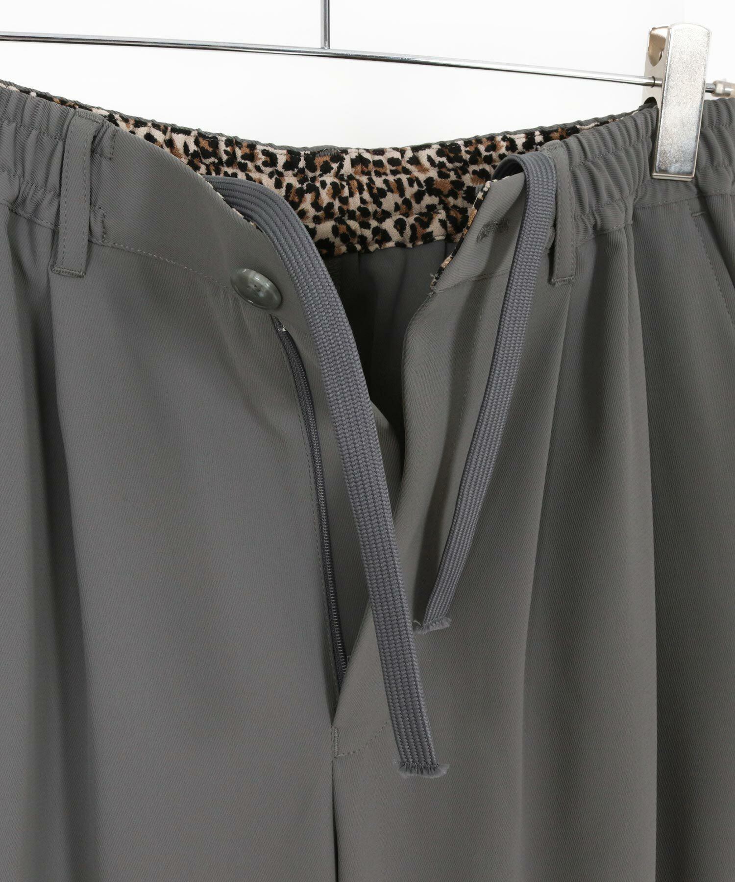 ウエストの帯裏にはレオパード柄のテキスタイルを貼り合わせ、見えない部分にもさりげない遊び心を。