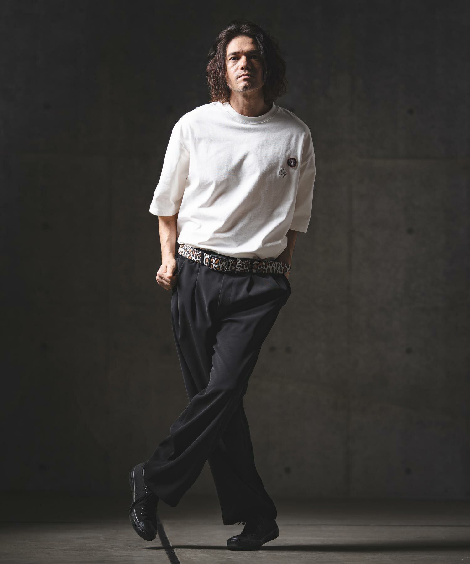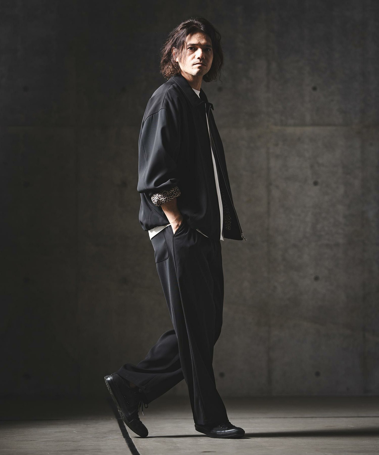 ワタリやヒップ周りにしっかりとボリュームを持たせ、裾に向かって真っすぐ落としたワイドストレートシルエット。
