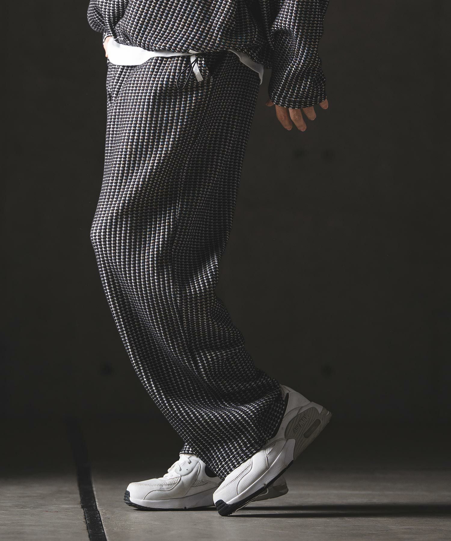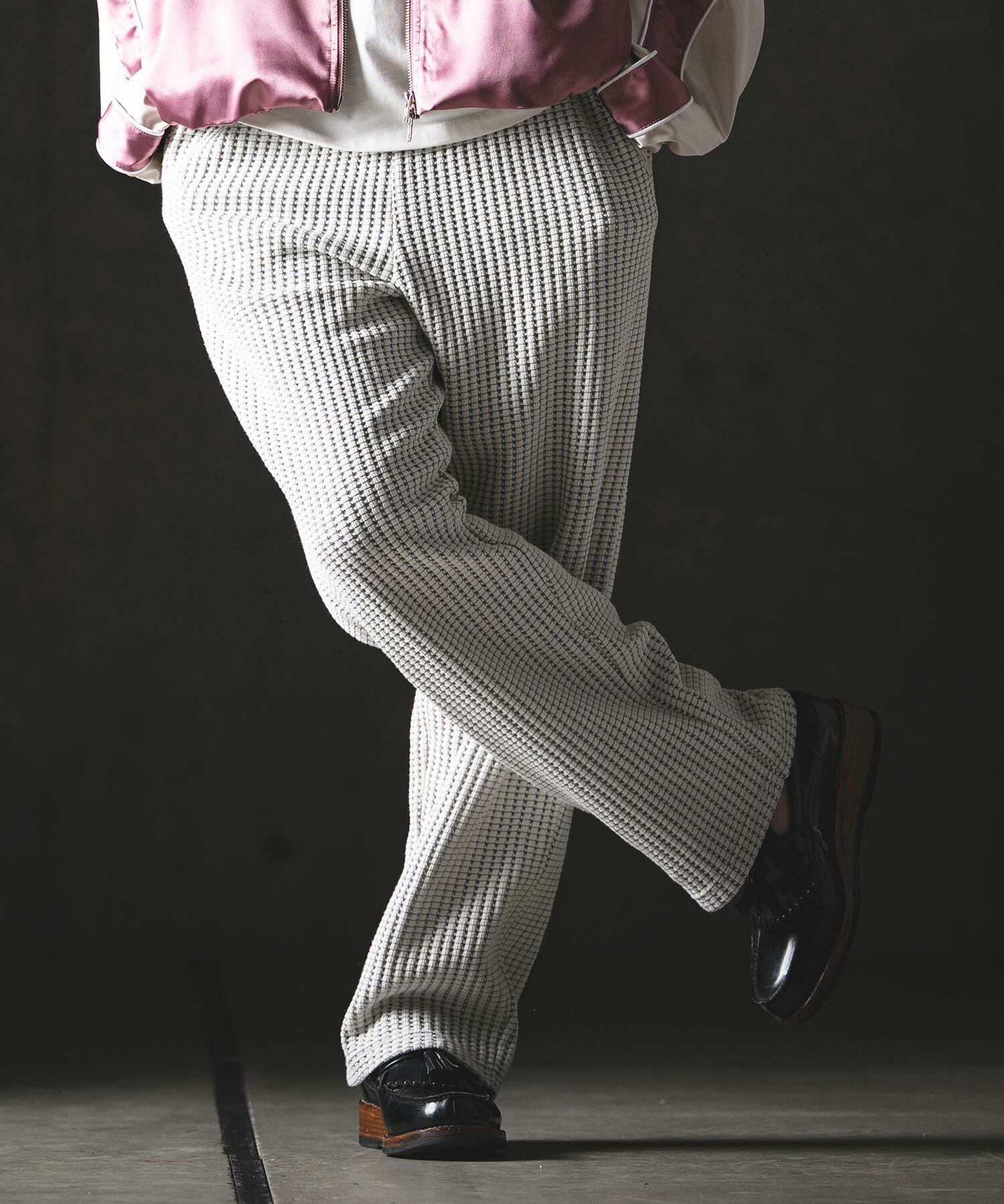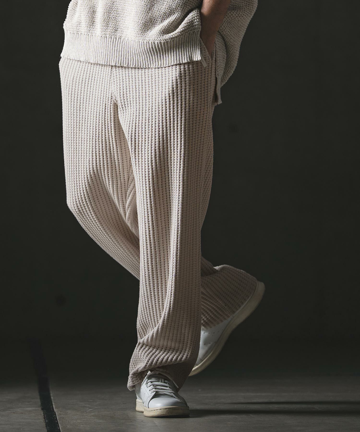 凹凸感のあるビッグワッフル素材とボリュームのあるシルエットが融合した、着回し自在なワイドストレートパンツです。