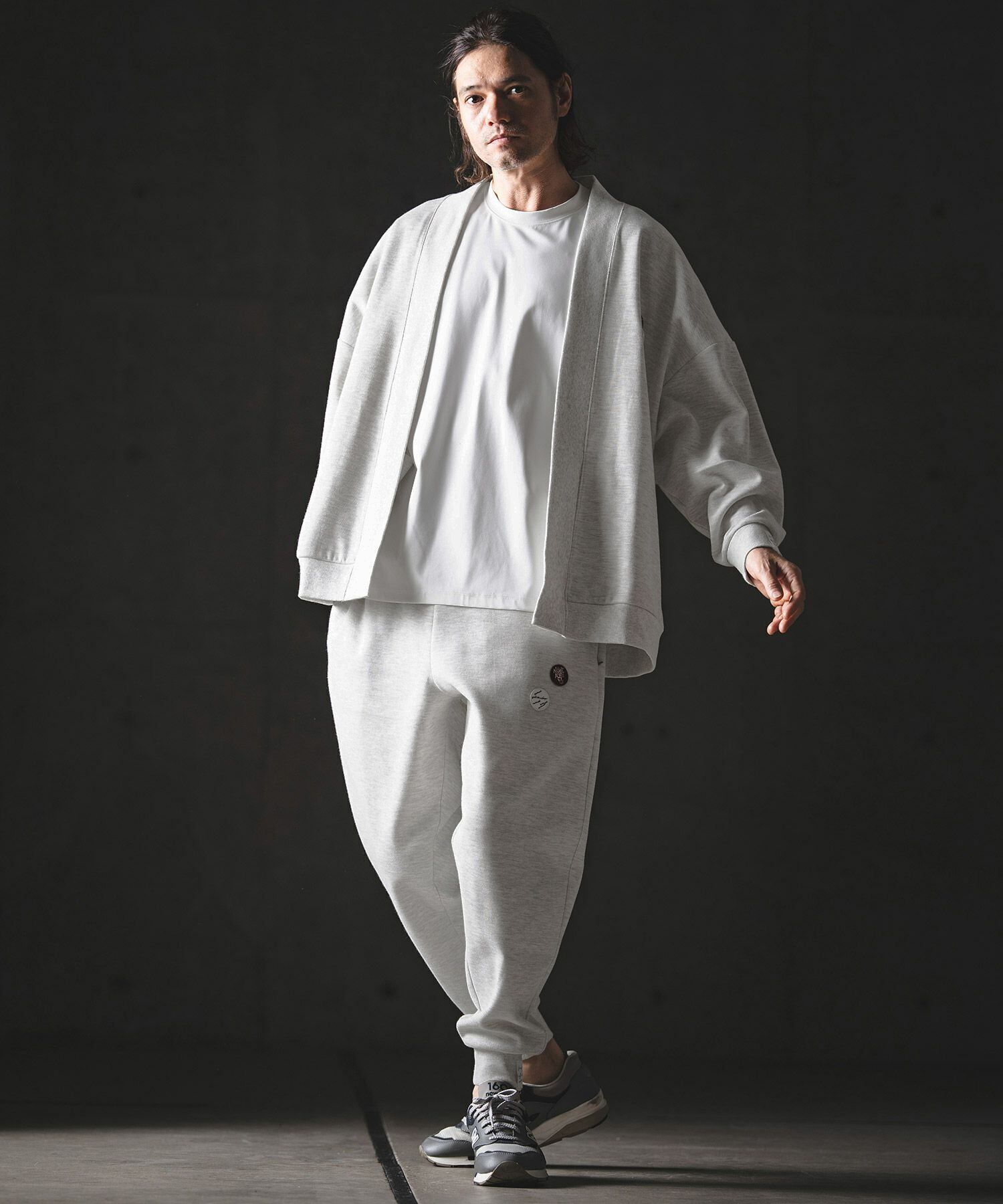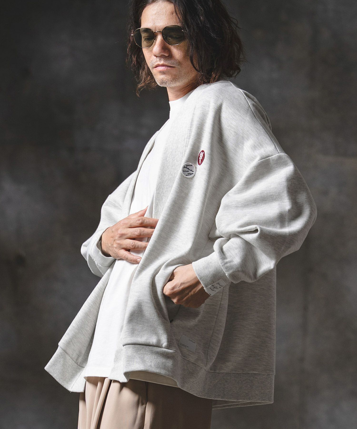 鹿の子編み特有の凹凸感を持つボンディングカットソー素材で仕立てた、ボタンレス仕様のミニマルカーディガン。