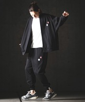 胸元にはワッペン刺繍を施し、ミニマルな構成の中にアイキャッチなアクセントを。