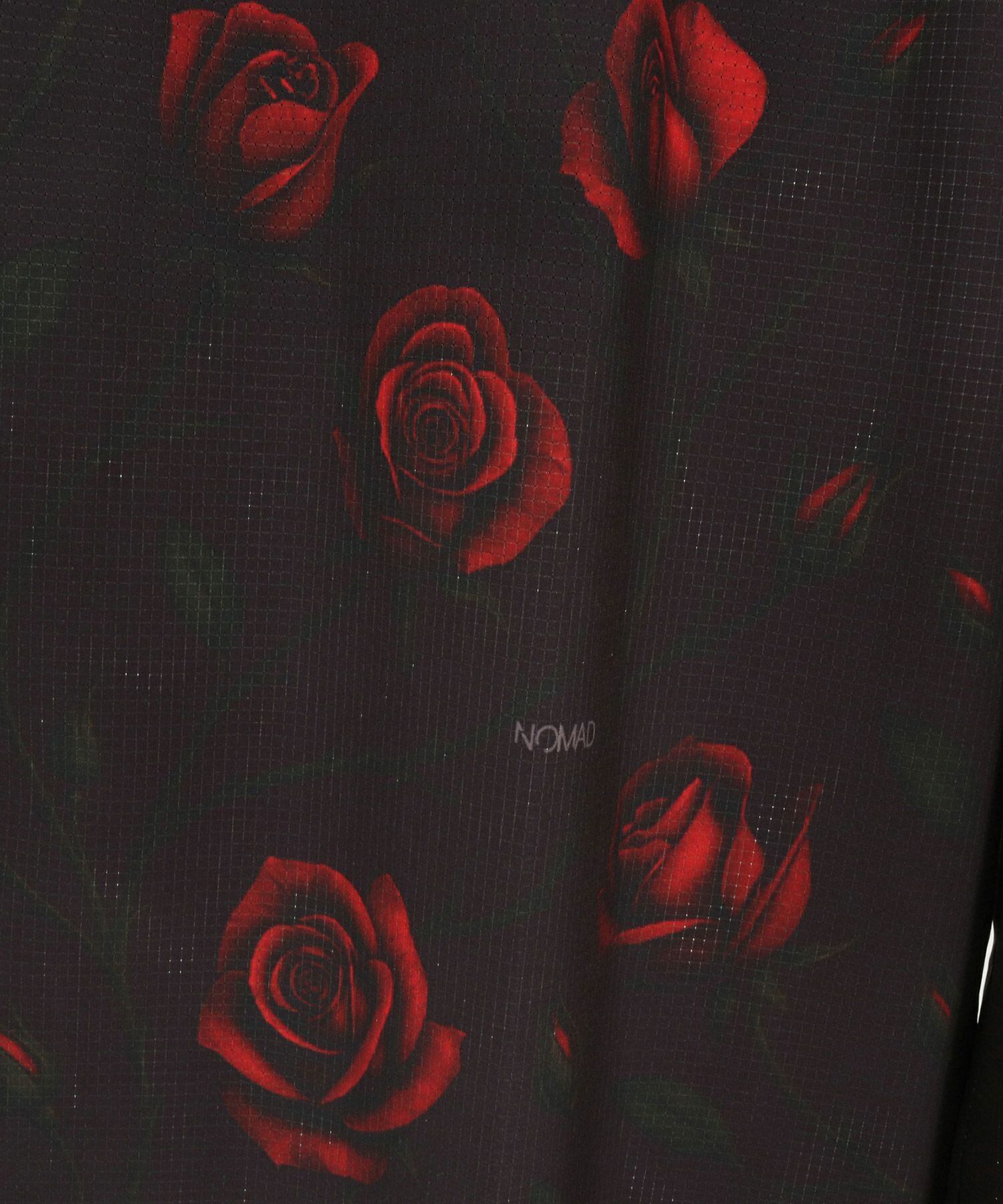 昇華転写技法により、ブラックベースに薔薇柄を鮮やかに表現したオリジナルテキスタイルが際立ちます。