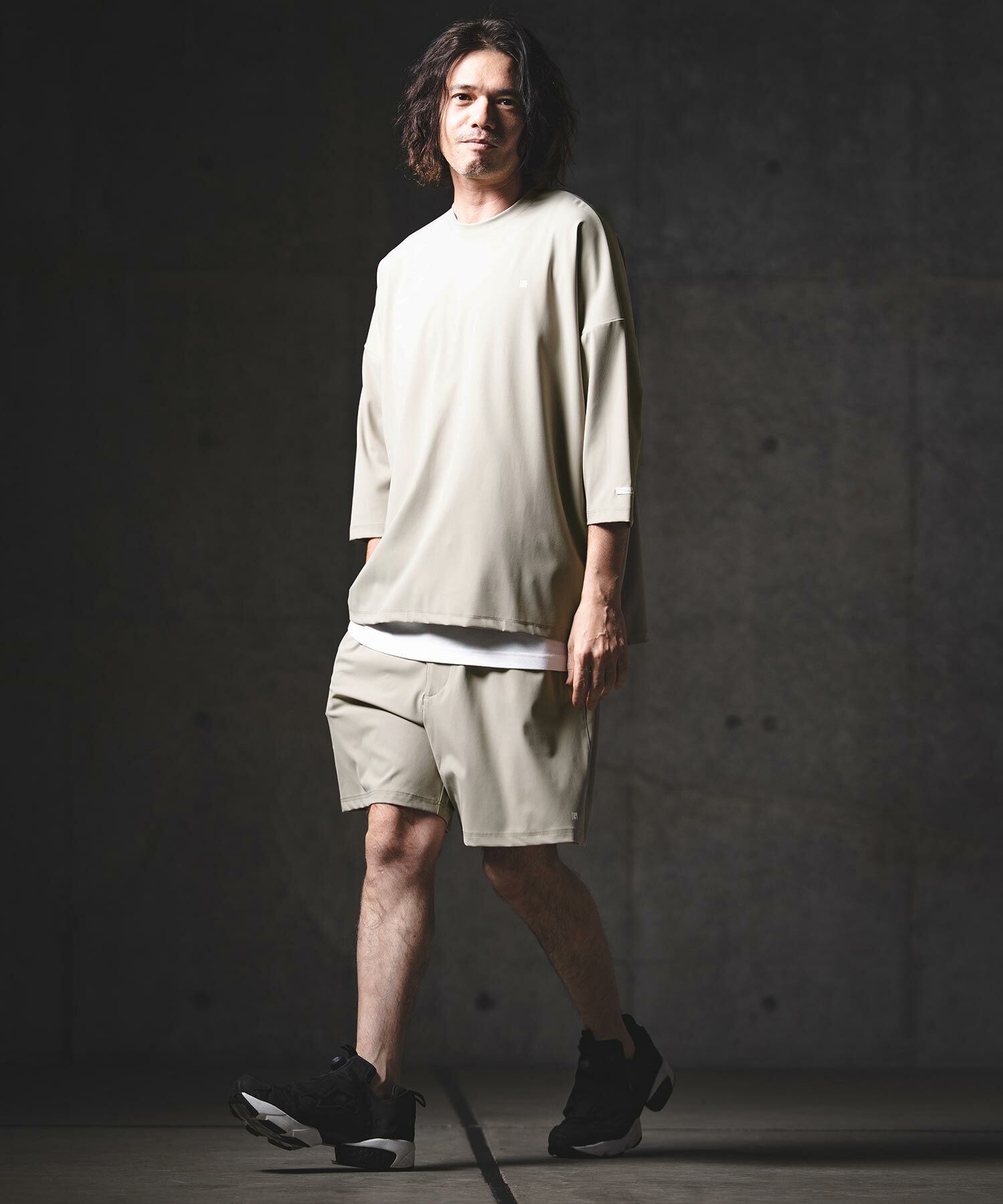 機能素材の快適さと、構築的なフォルムが際立つ7分袖カットソー。