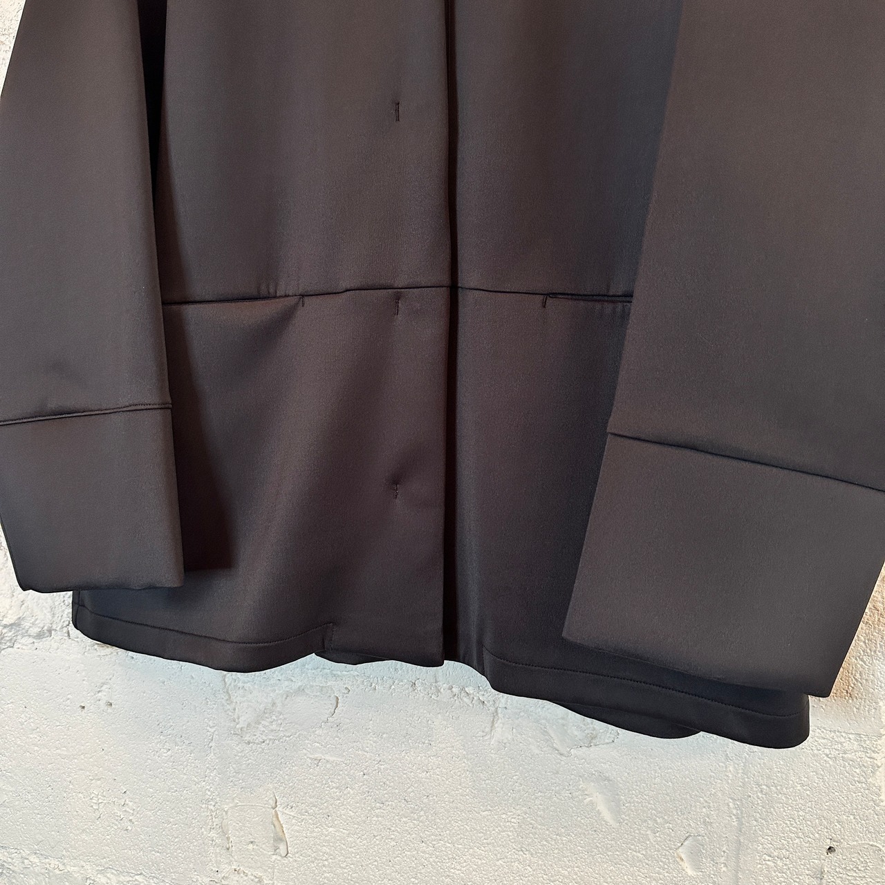 後身頃はタックデザインで立体的なコクーンシルエットがポイントです。