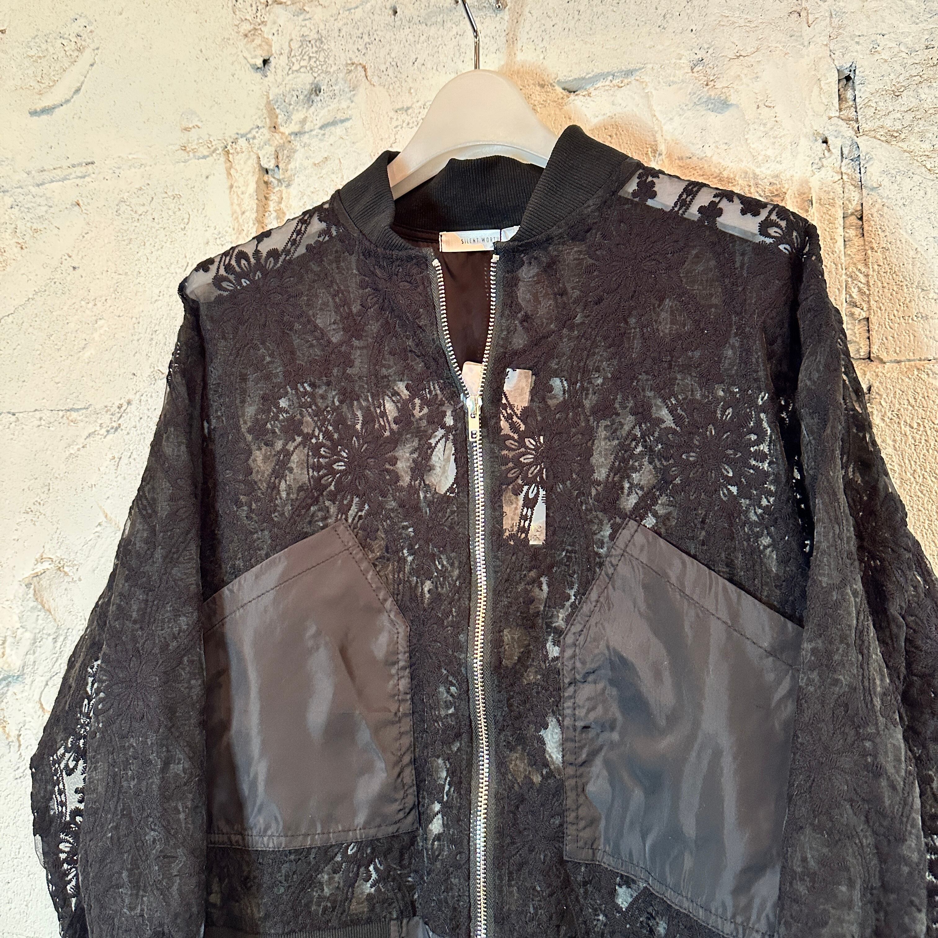 Ladies'オーガンジー刺繍ジップアップブルゾン