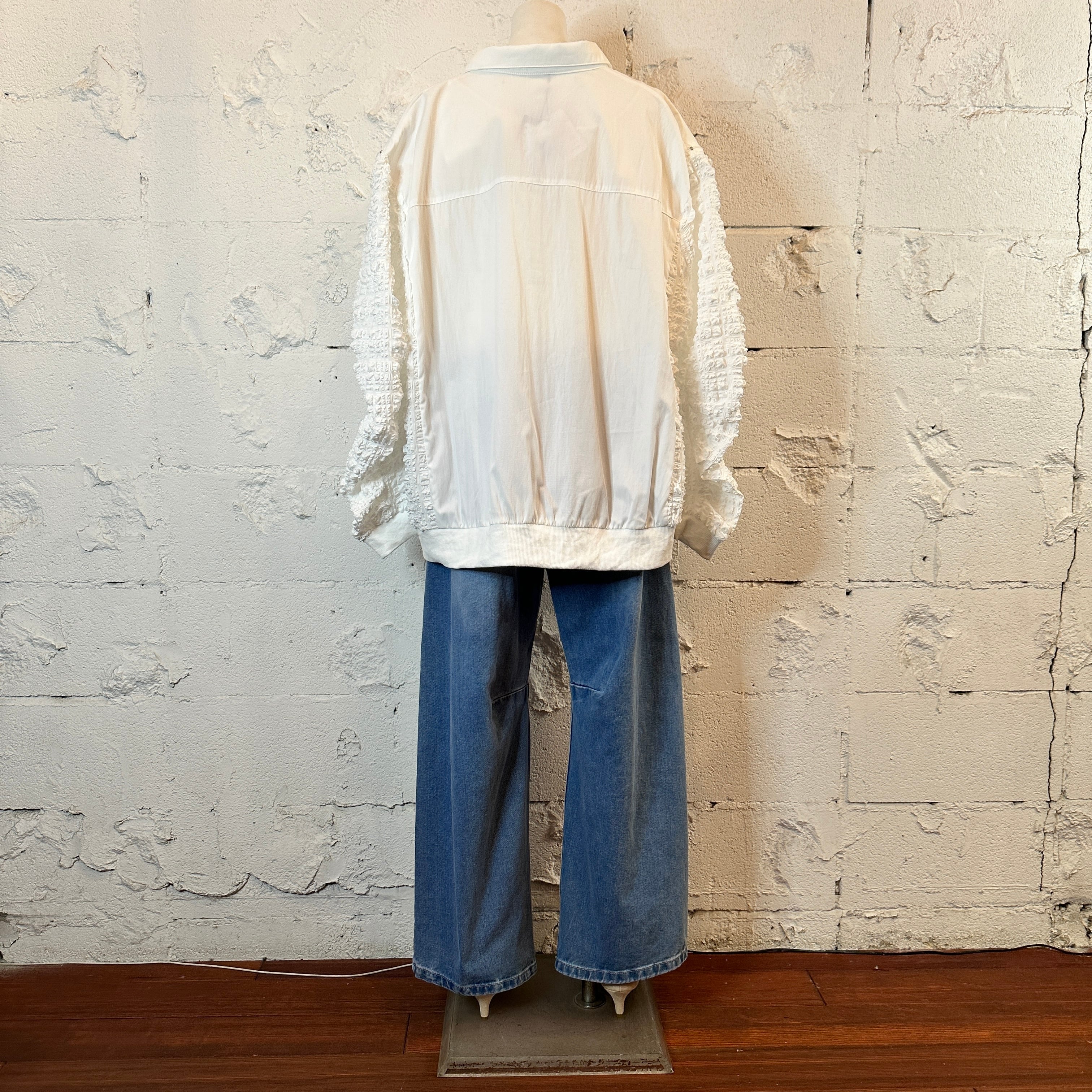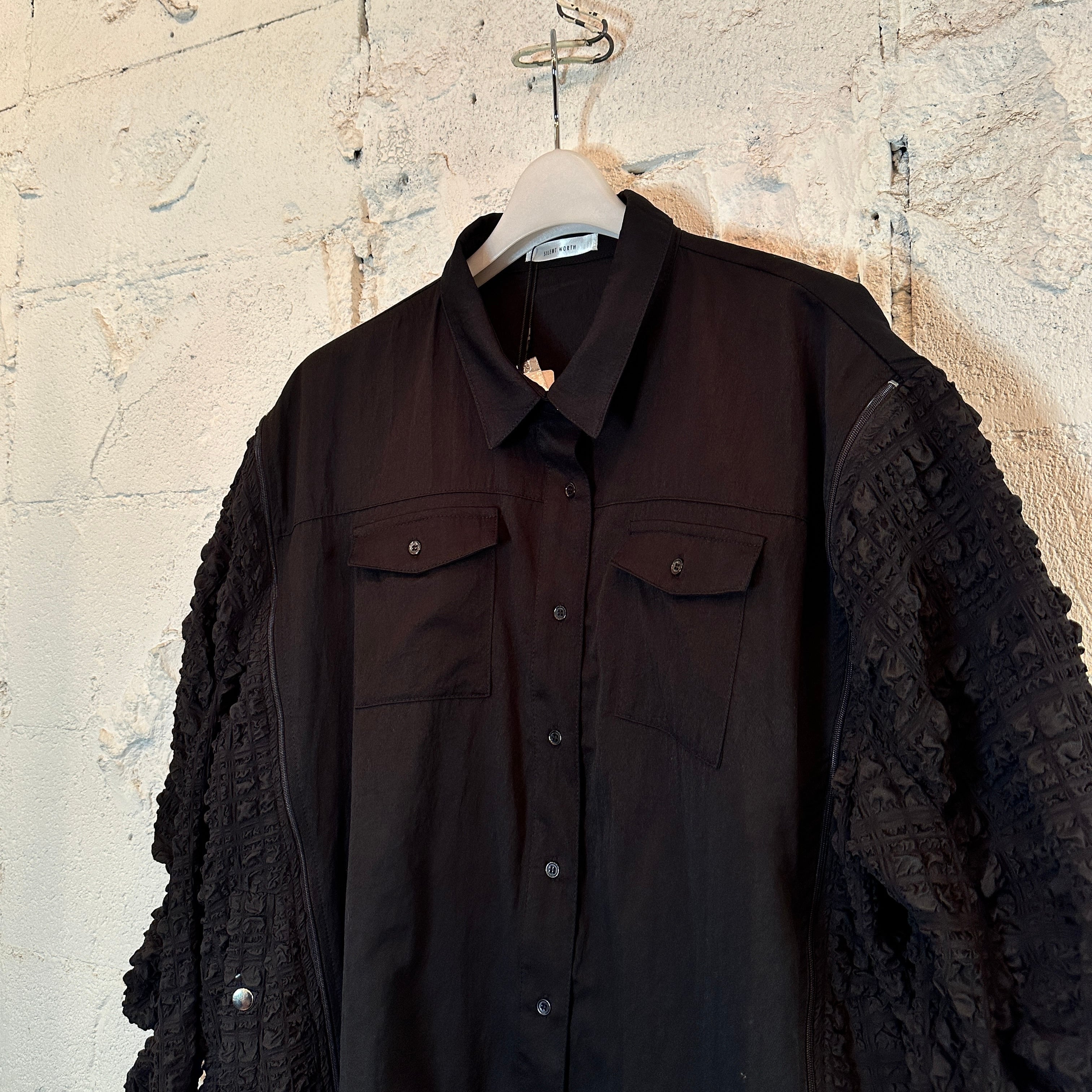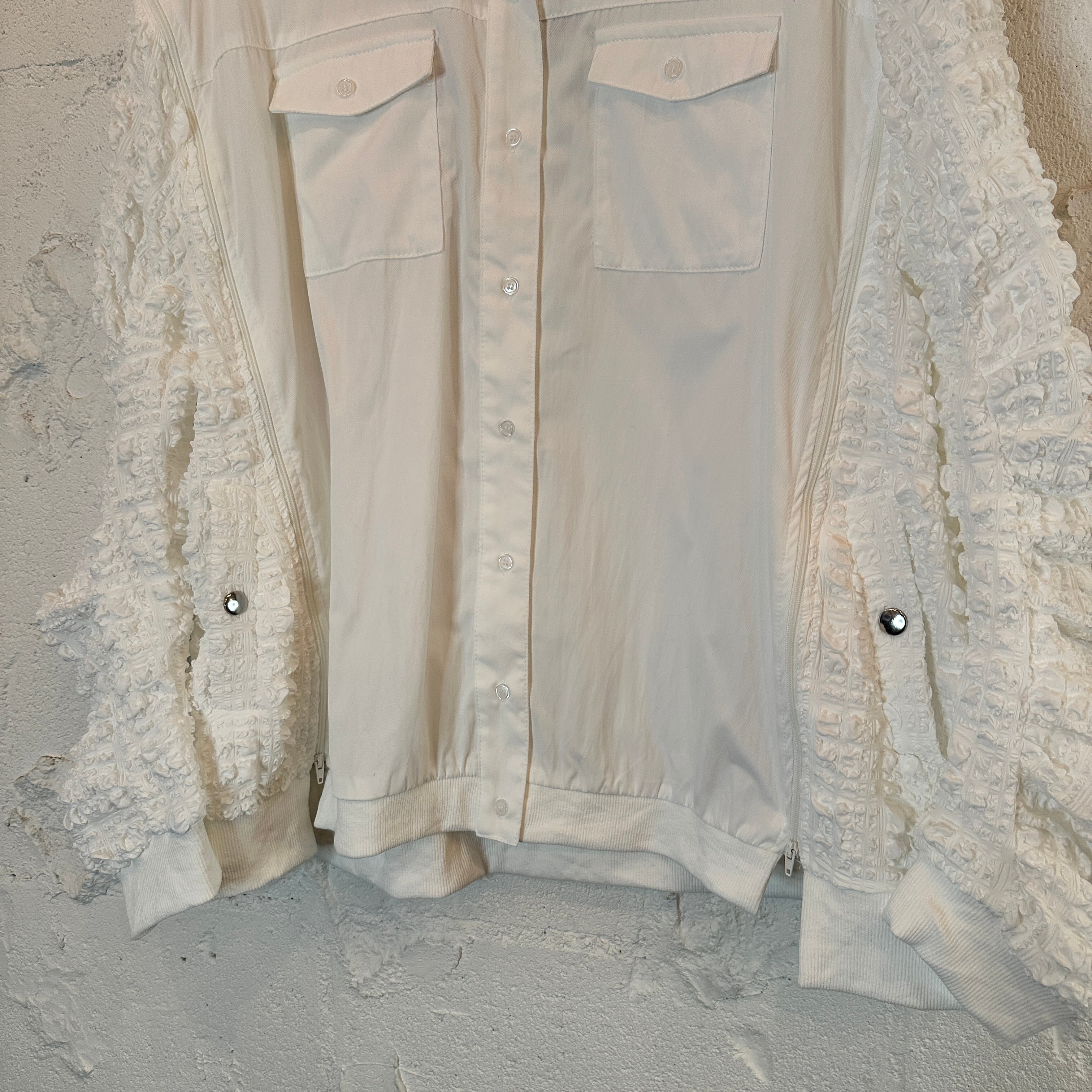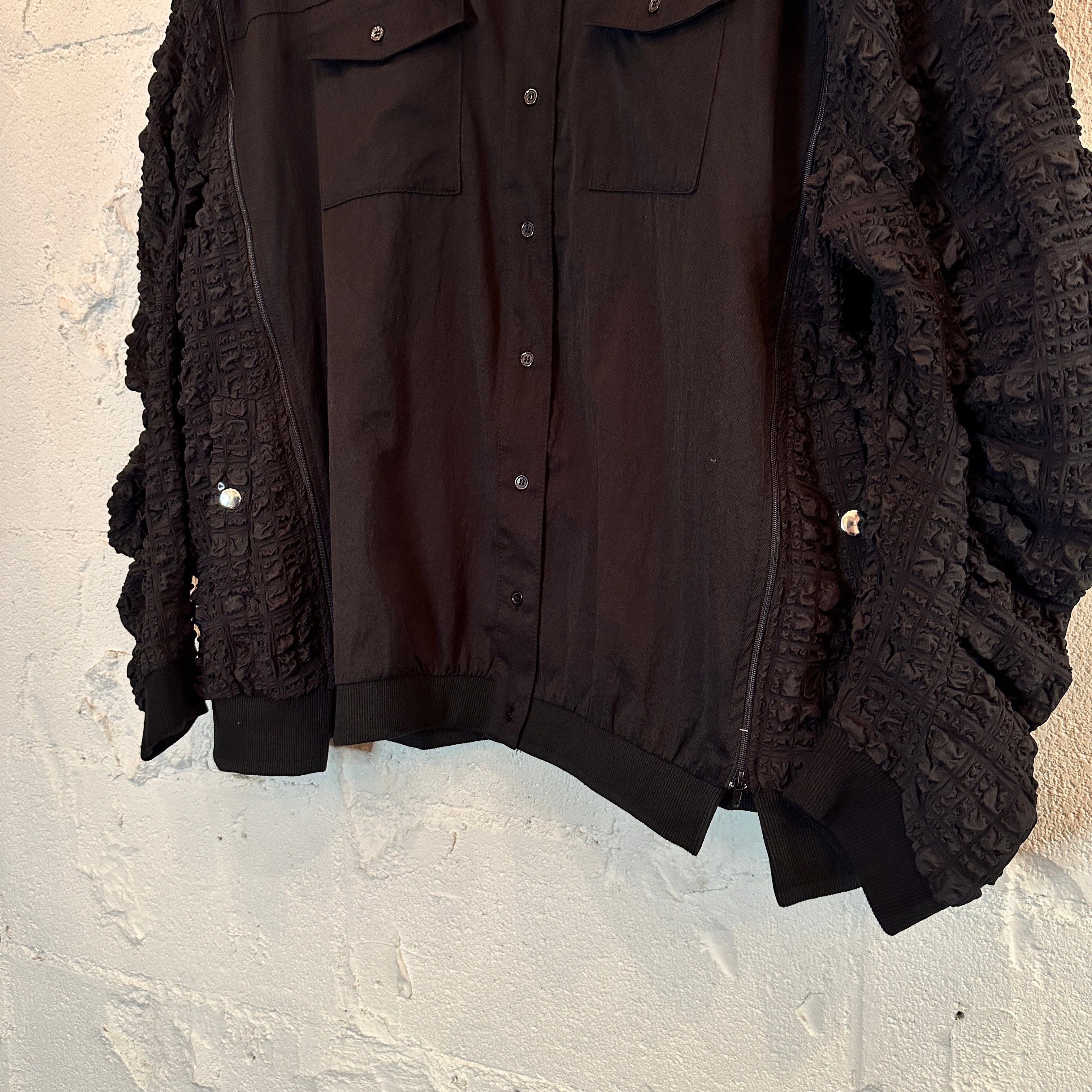 #effectone#レディース#Ladies'ジャガード切替刺繍ジップデザインシャツ