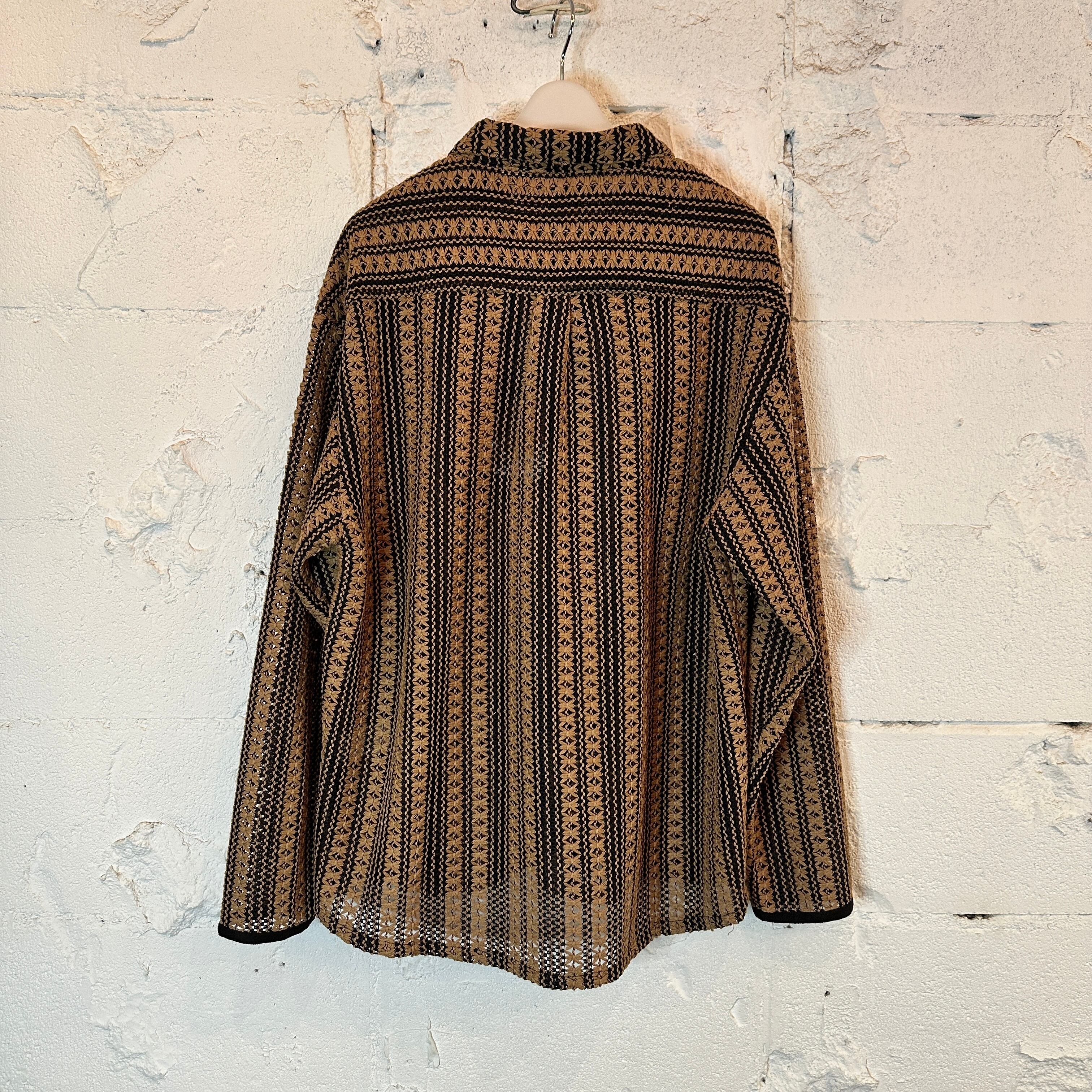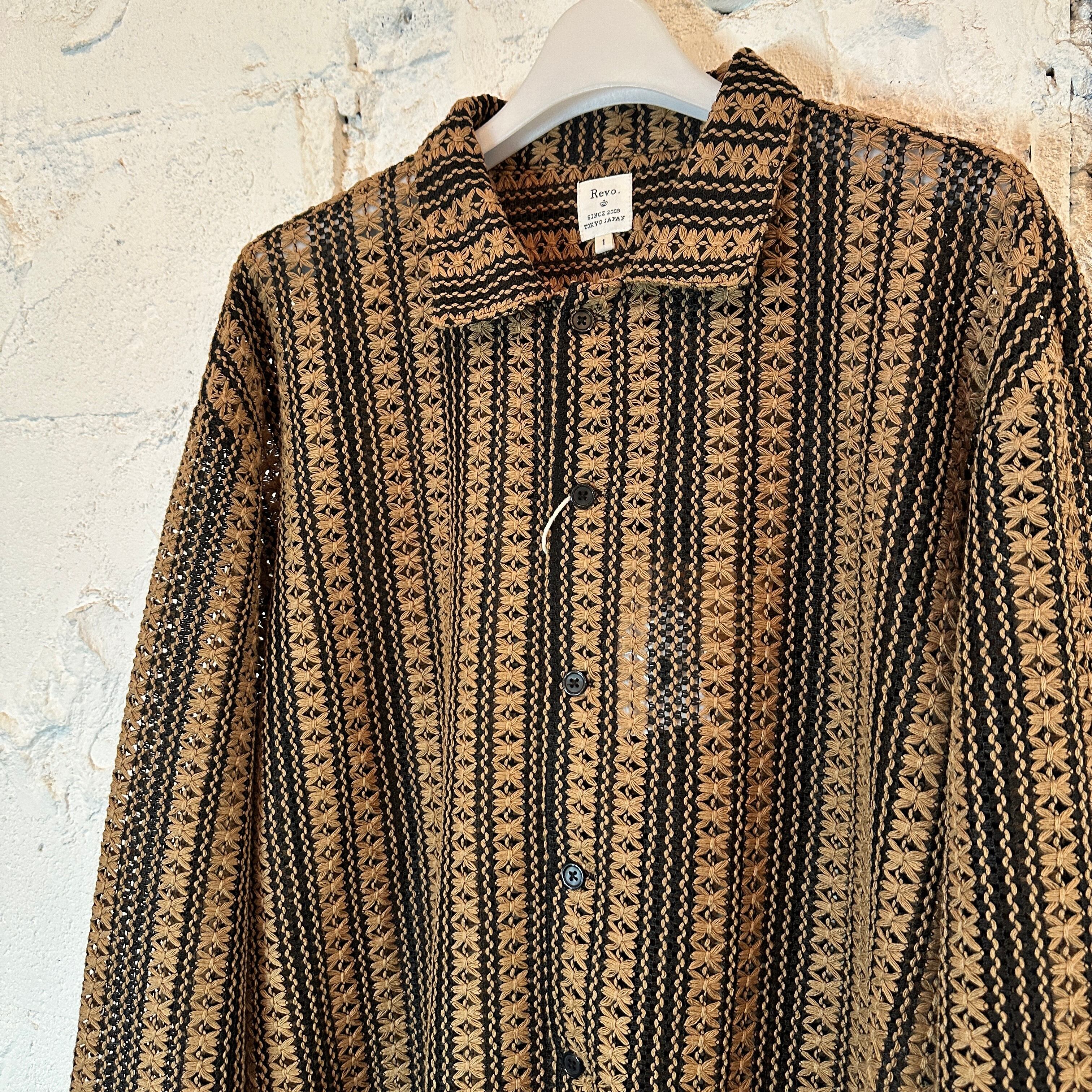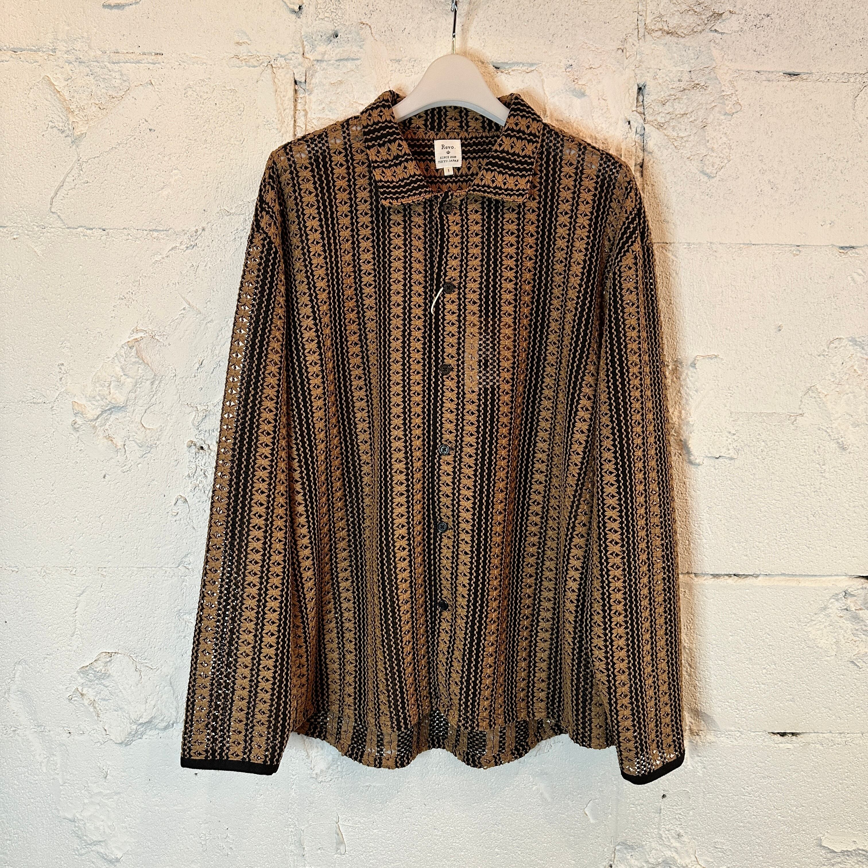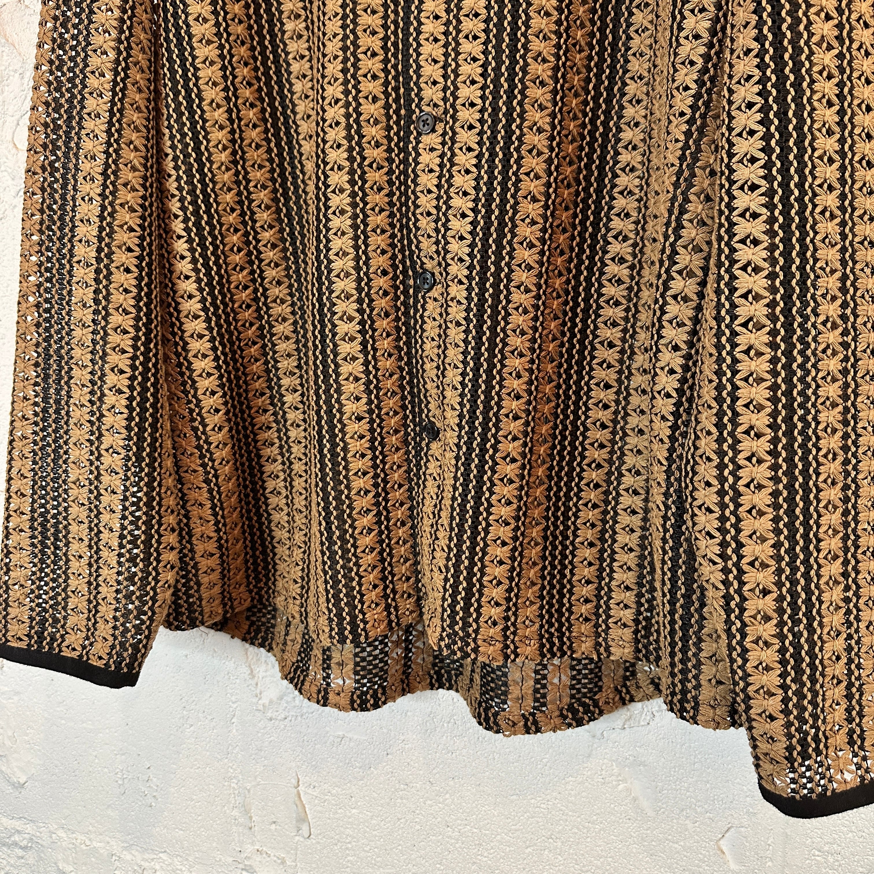透かし編みフラワーストライプLS シャツ