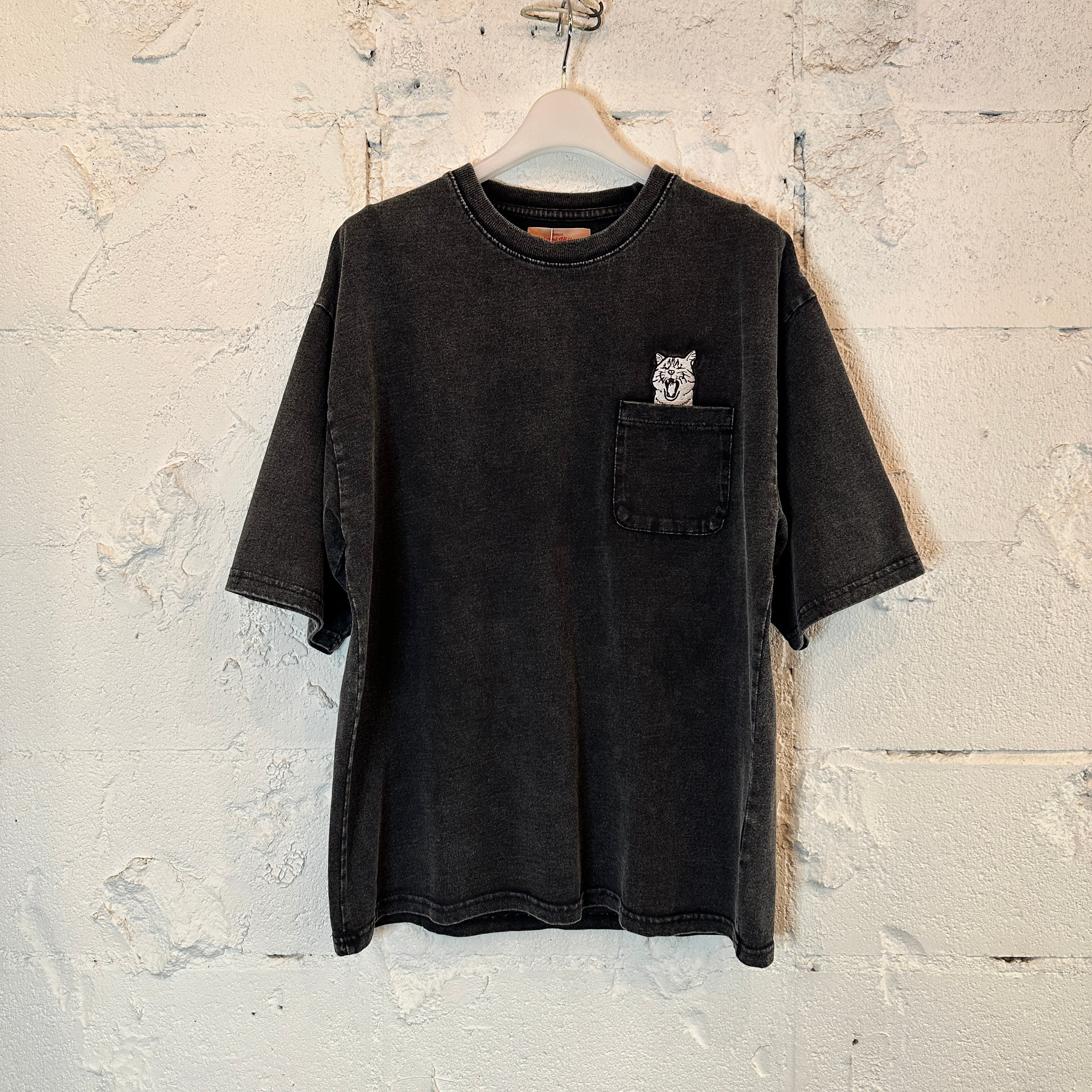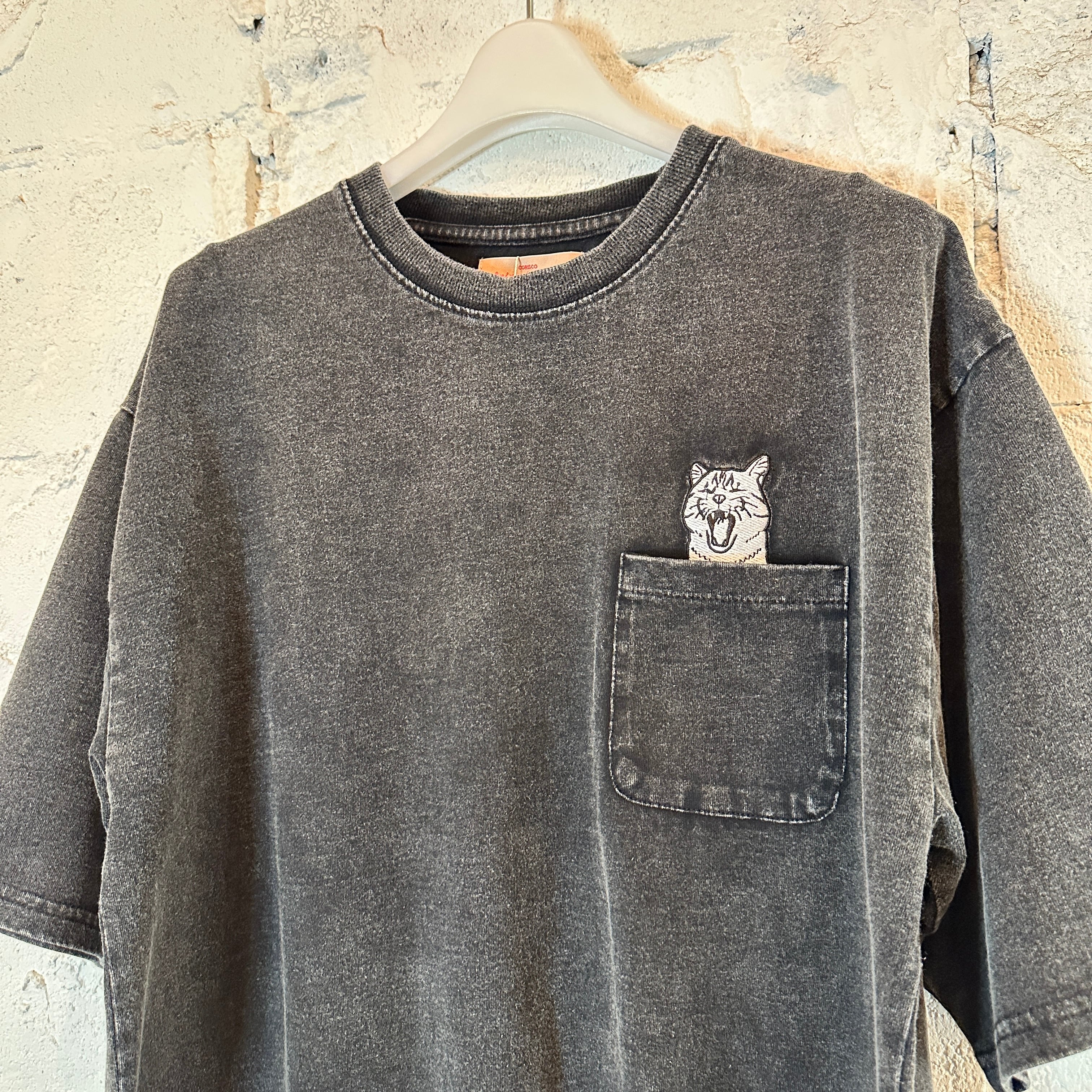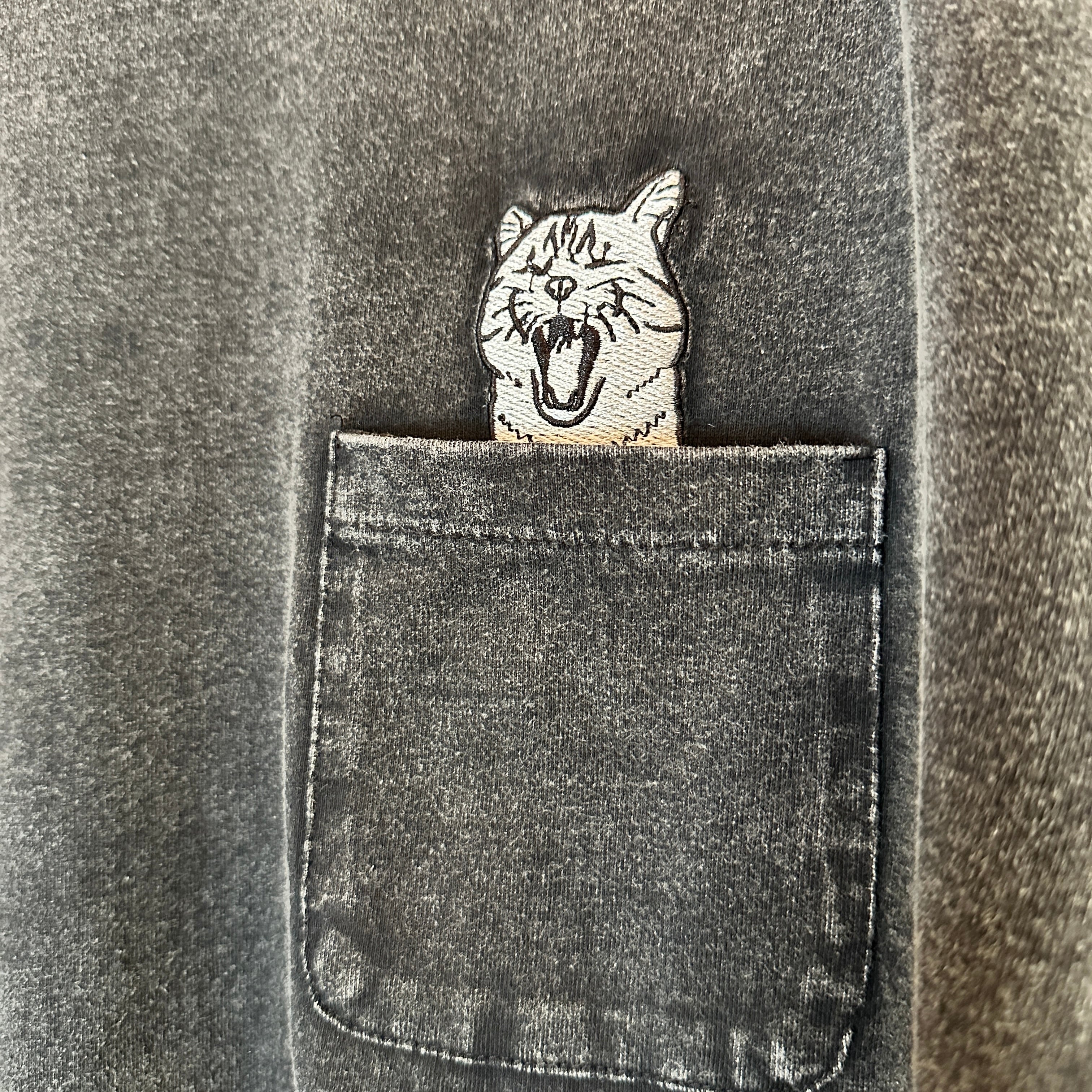 スノーウォッシュ加工アニマル刺繍ポケットTEE