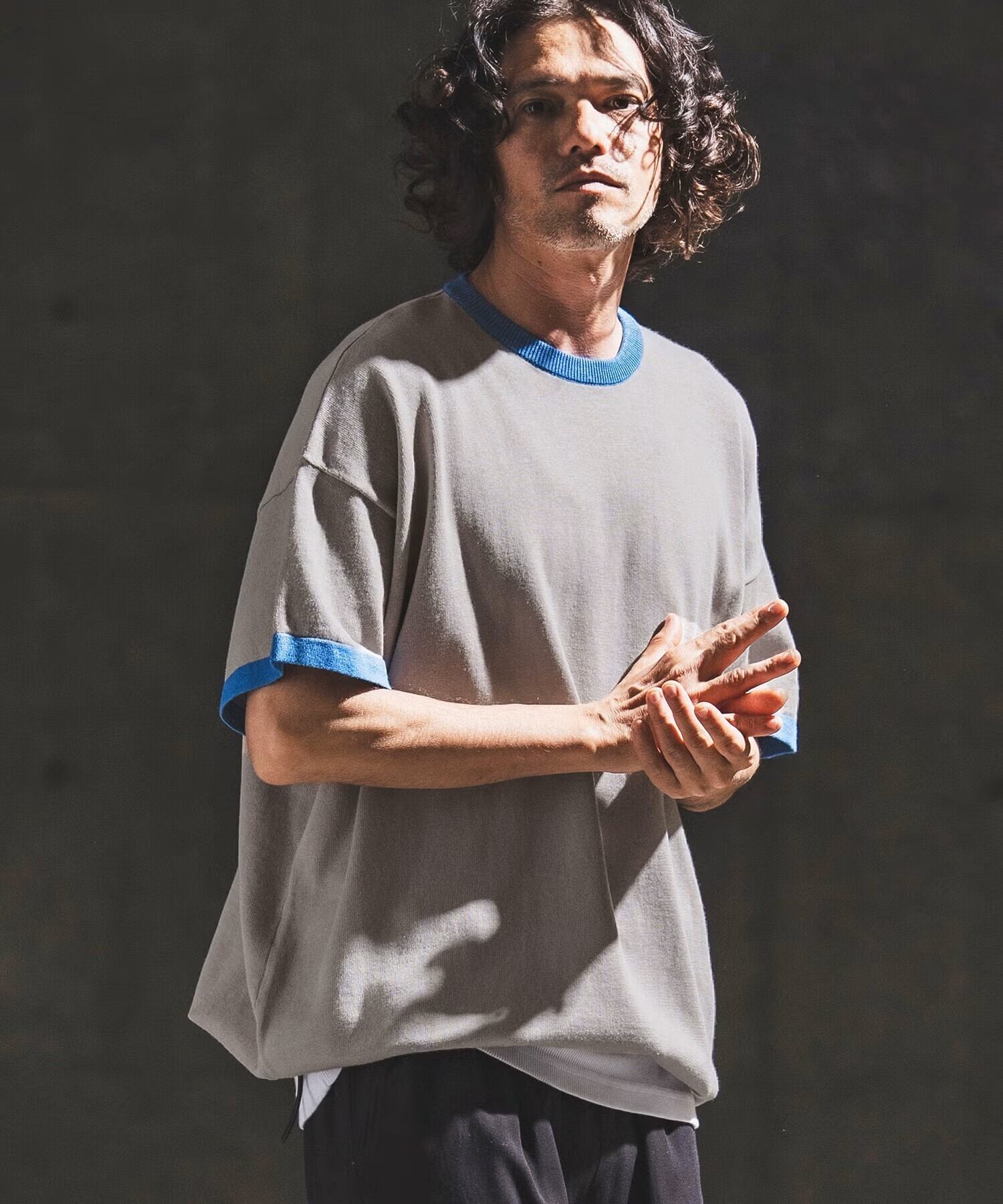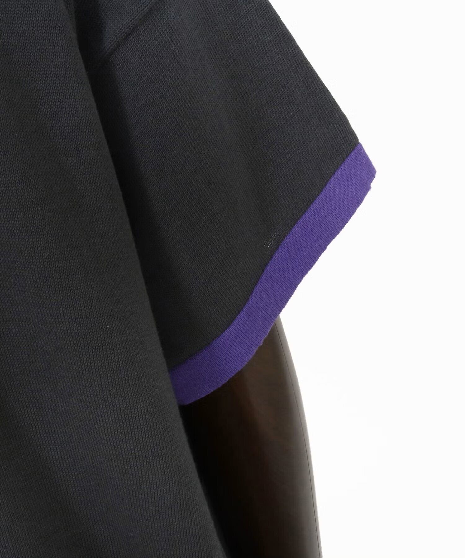 襟と袖にブライトカラーのリンガー配色を施し、ポップで軽快なムードを添えた一枚です。