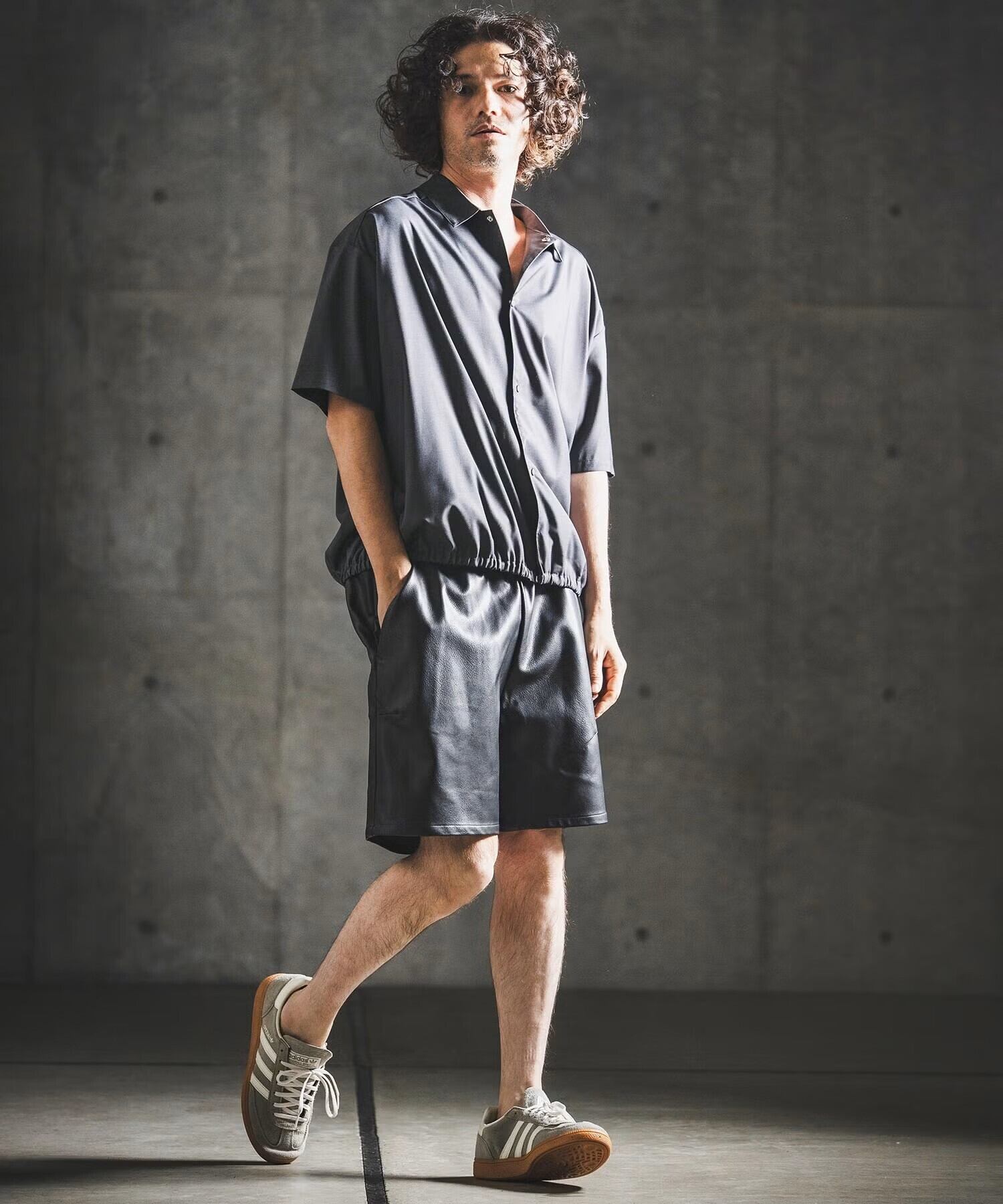 同素材のパンツと合わせれば、まとまりのあるセットアップスタイルも楽しめます。