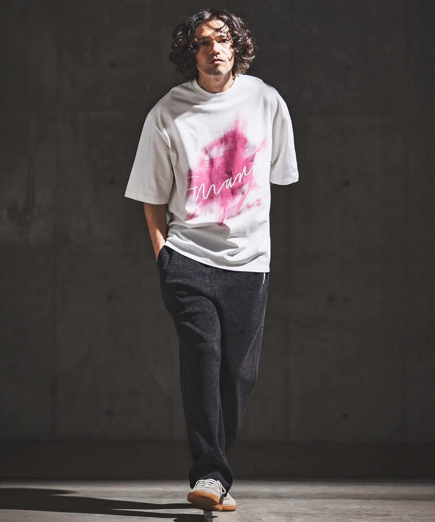 存在感を引き上げるインパクトのあるグラフィックで、スタイリングの主役として活躍する一枚です。