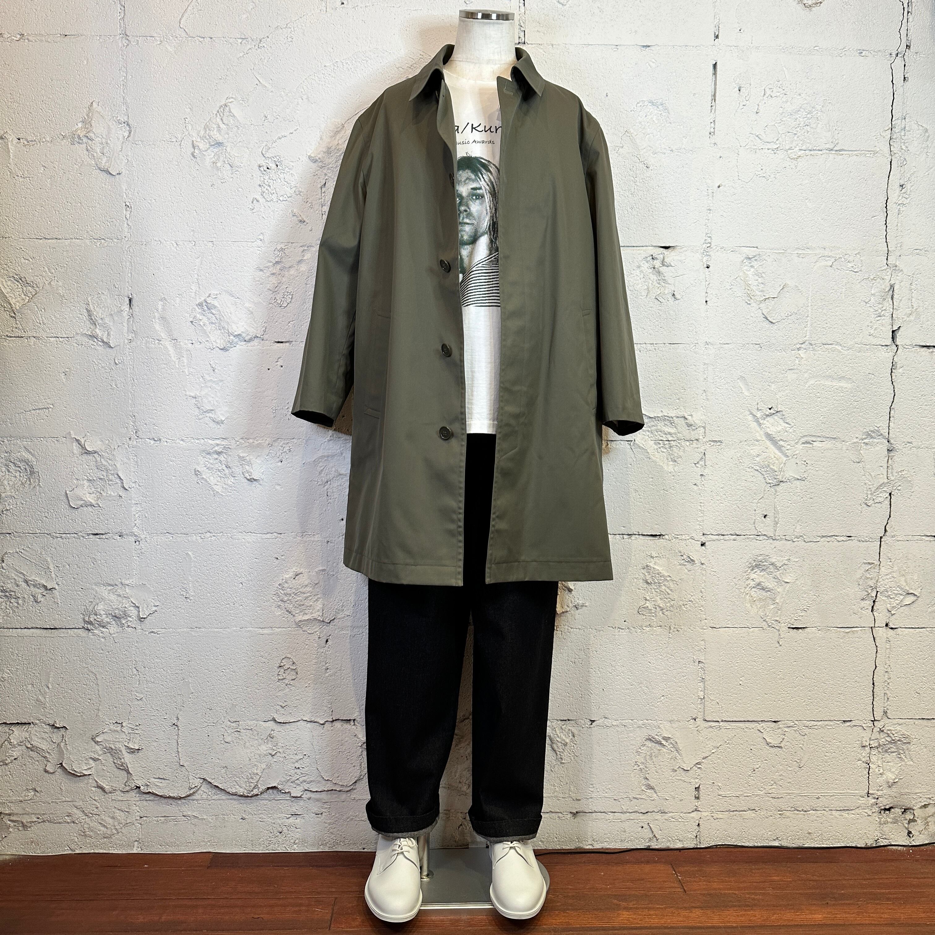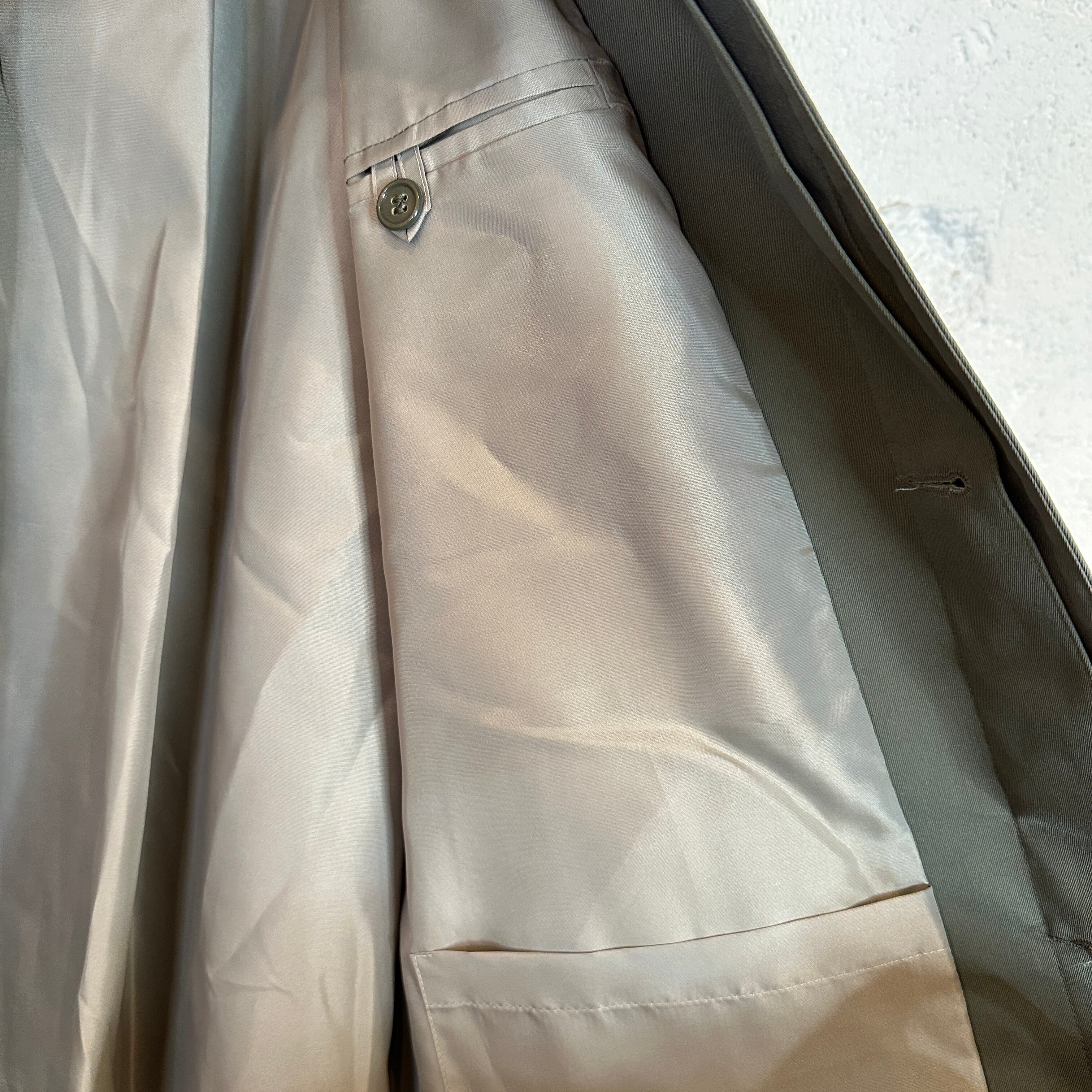 グレーとカーキの中間のような落ち着いた雰囲気の色合い。野暮ったさを全く感じさせない絶妙なシルエットで、流行に左右されず長く愛用していただける一着です。