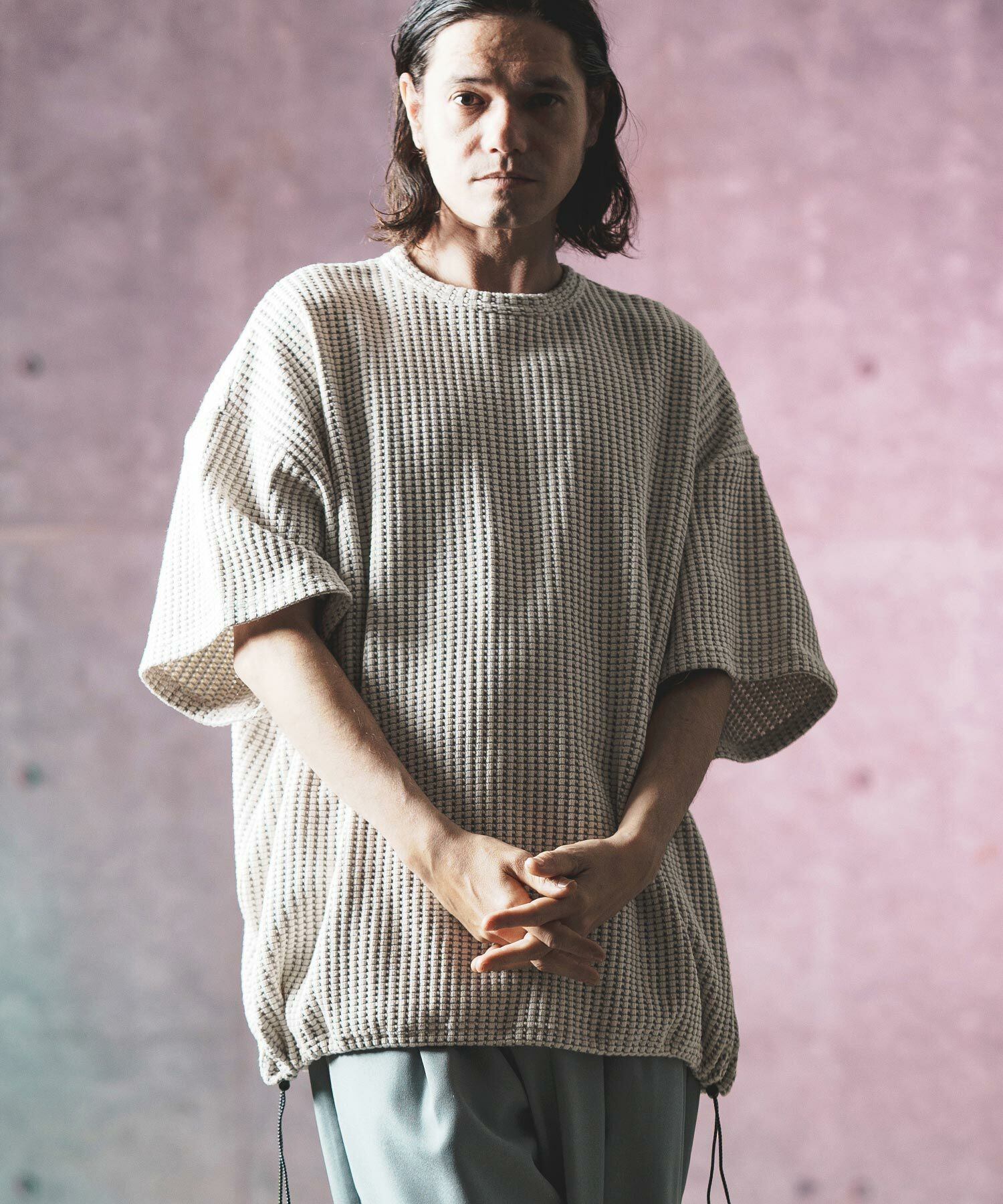 凹凸感が特徴のワッフル編みカットソーを使用したオーバーサイズT-shirtです。