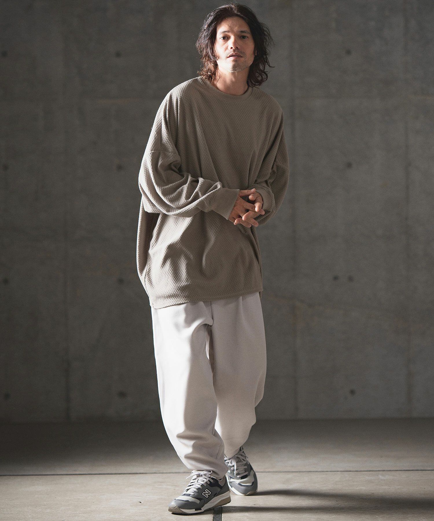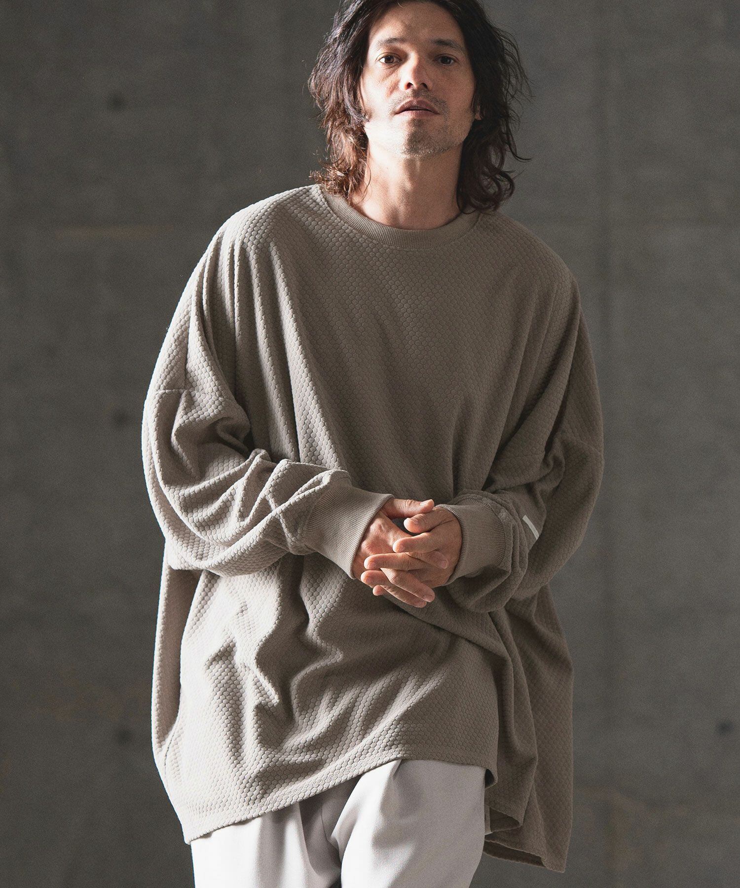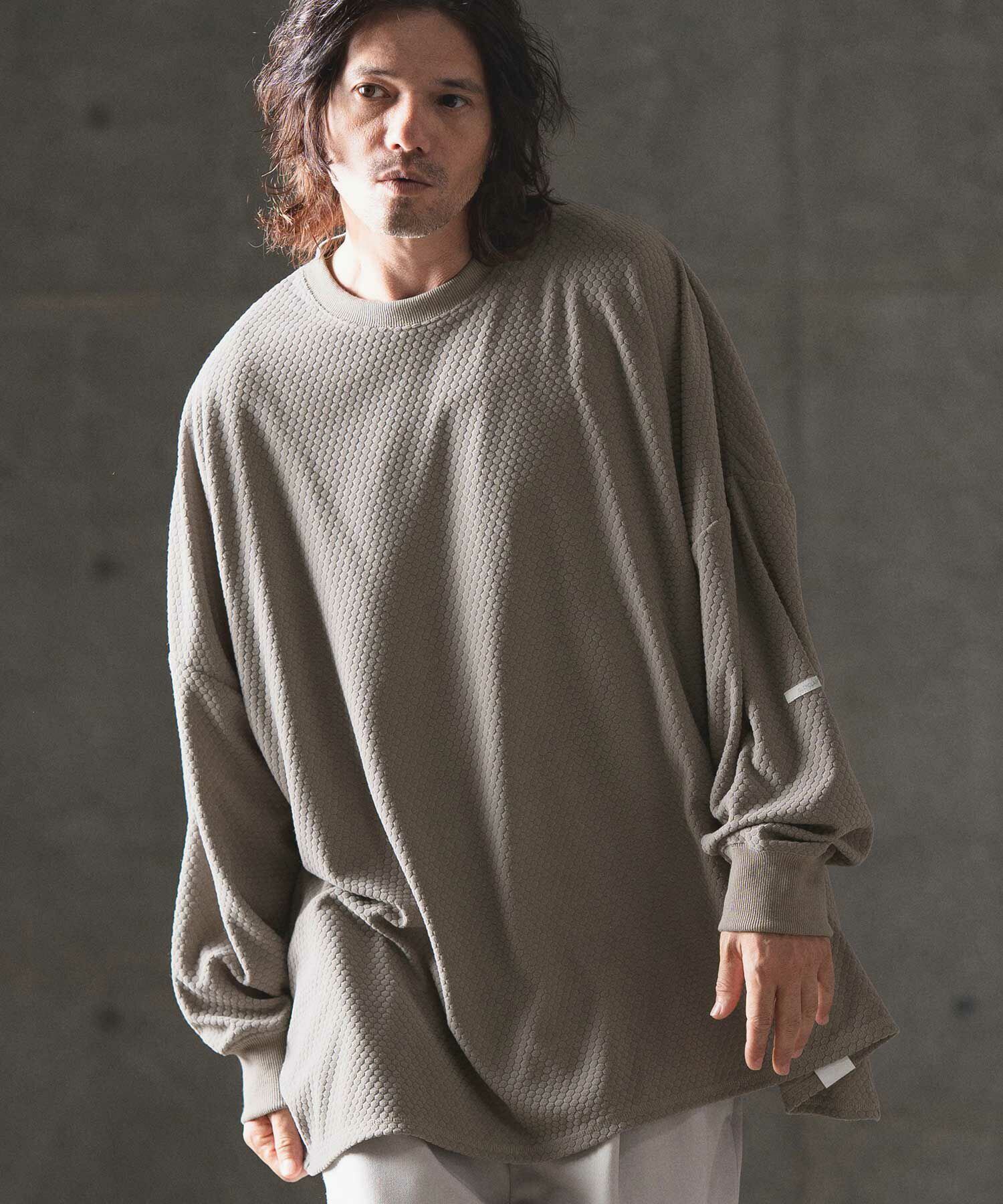 ハニカム状にジャガード織りを施したパイルファブリックを使用したスーパービッグシルエットのロングスリーブカットソーです。