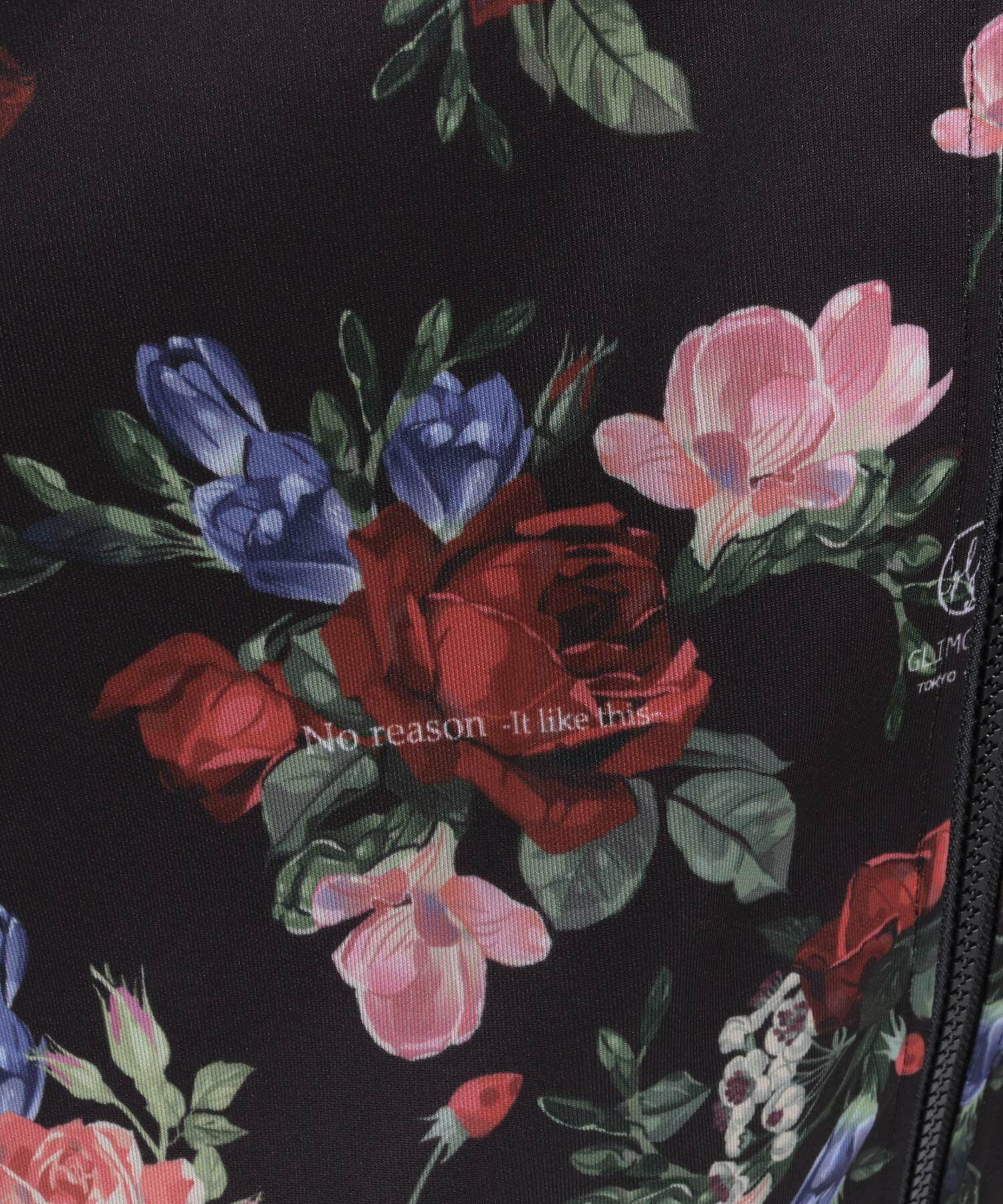 ブラックベースで柄を引き立たせるように、カラーバリエーション豊かな薔薇を散りばめた個性的な世界観が特徴です。