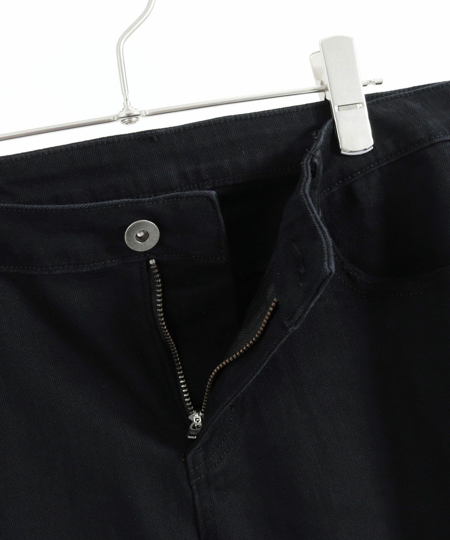 5ポケット、フロントはタックボタンとファスナーを仕様した往年のブラックスキニーパンツの定番ディテールです。