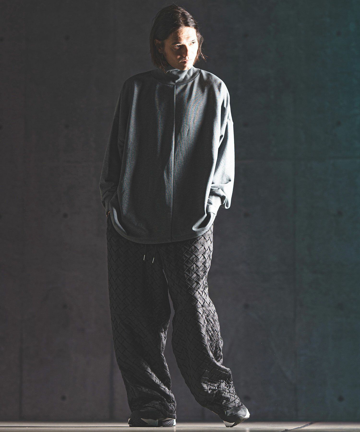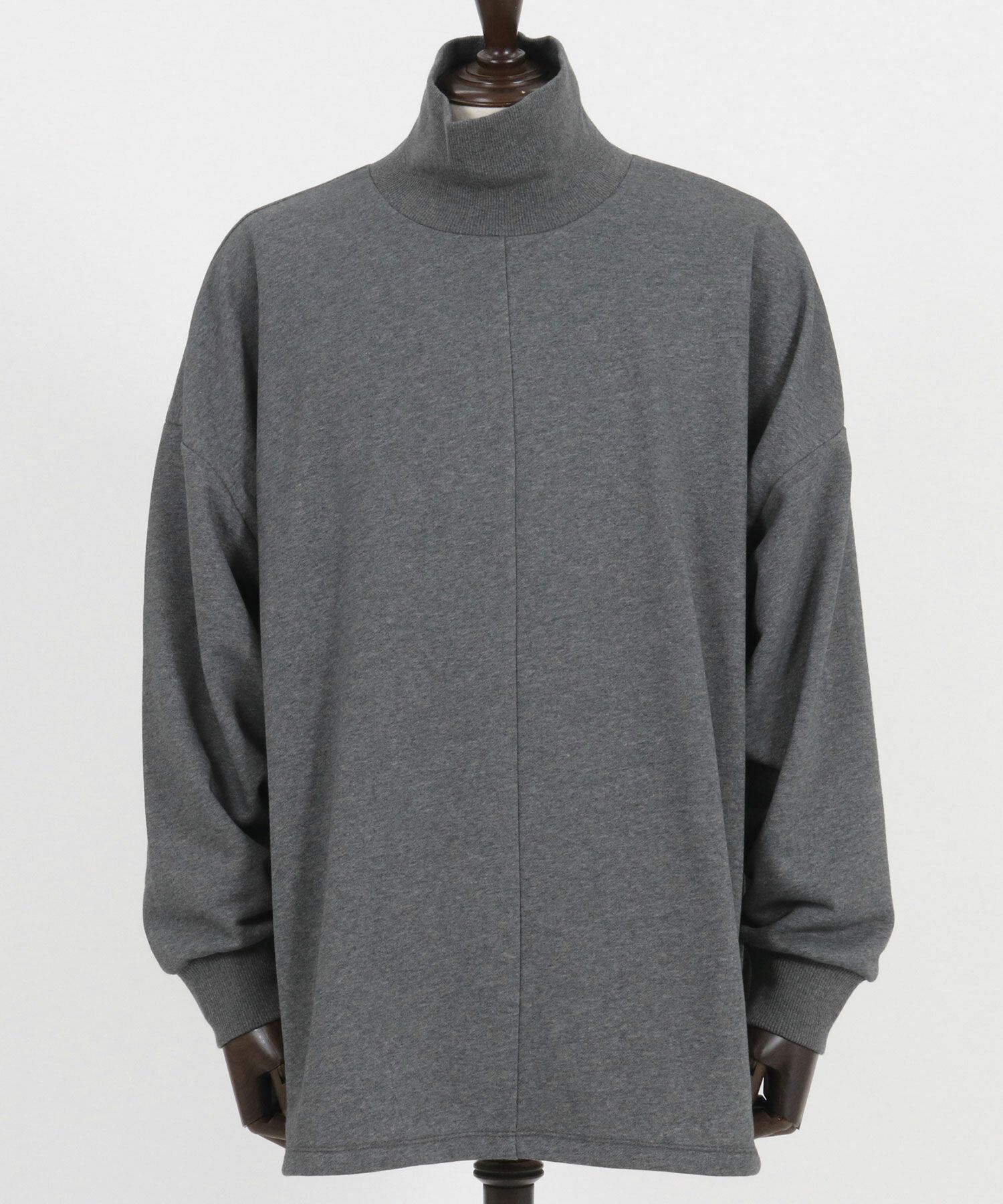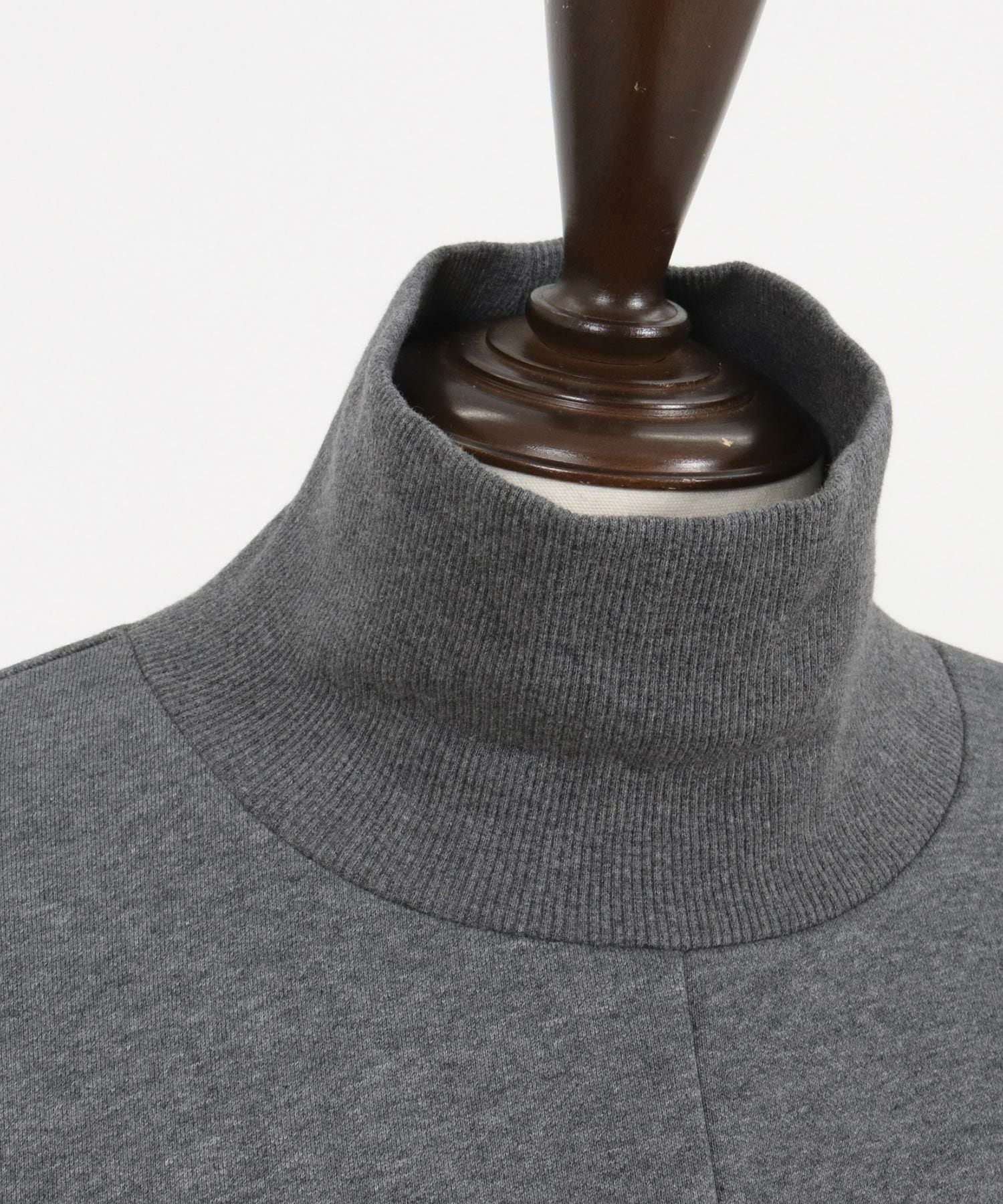 タートルネックのように折り返すのではなく、ハイネックやモックネックよりも高さがあり、そのままクシュッとしたようなラフな着こなし方をして頂くことがオススメのネックデザインです。
