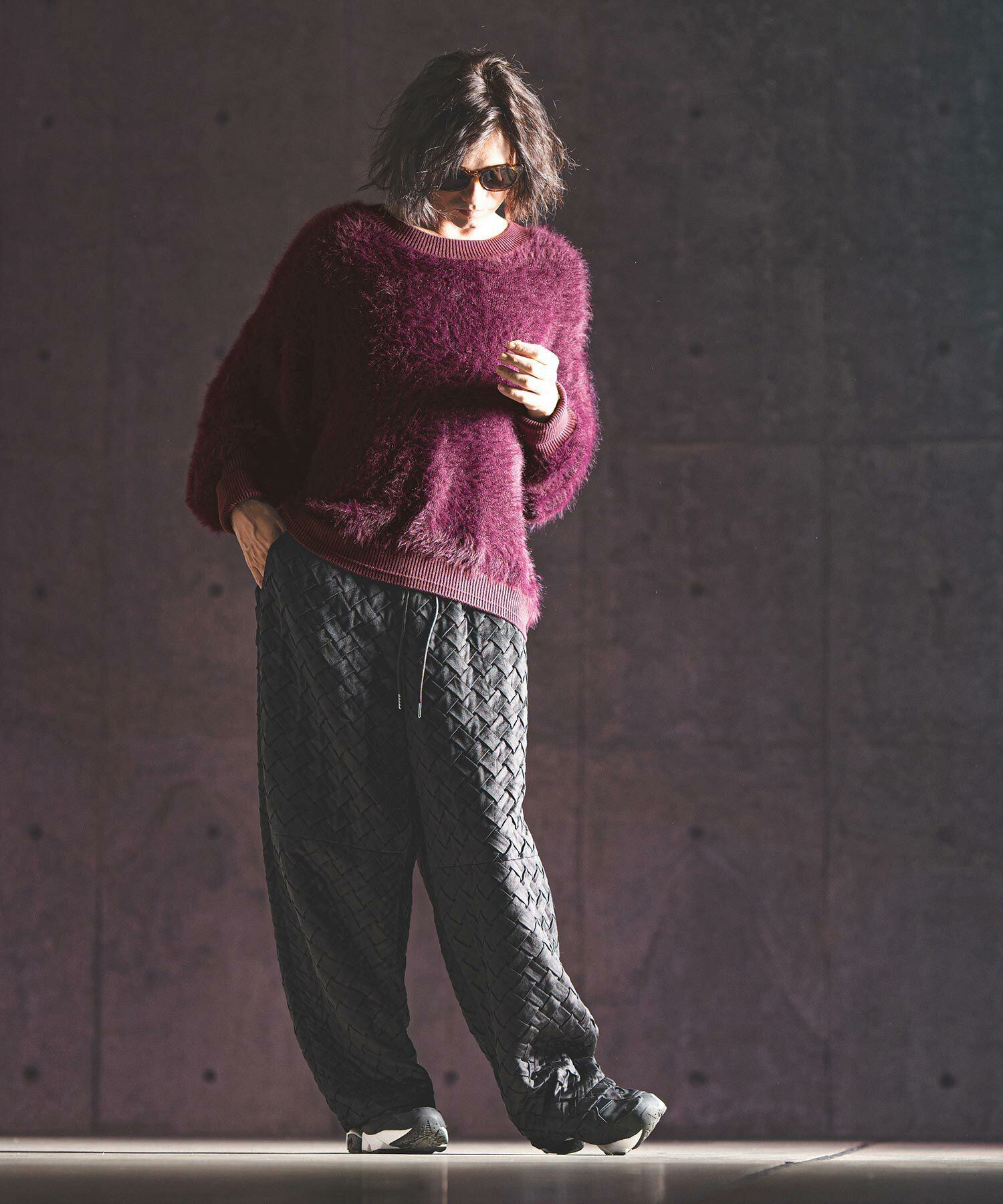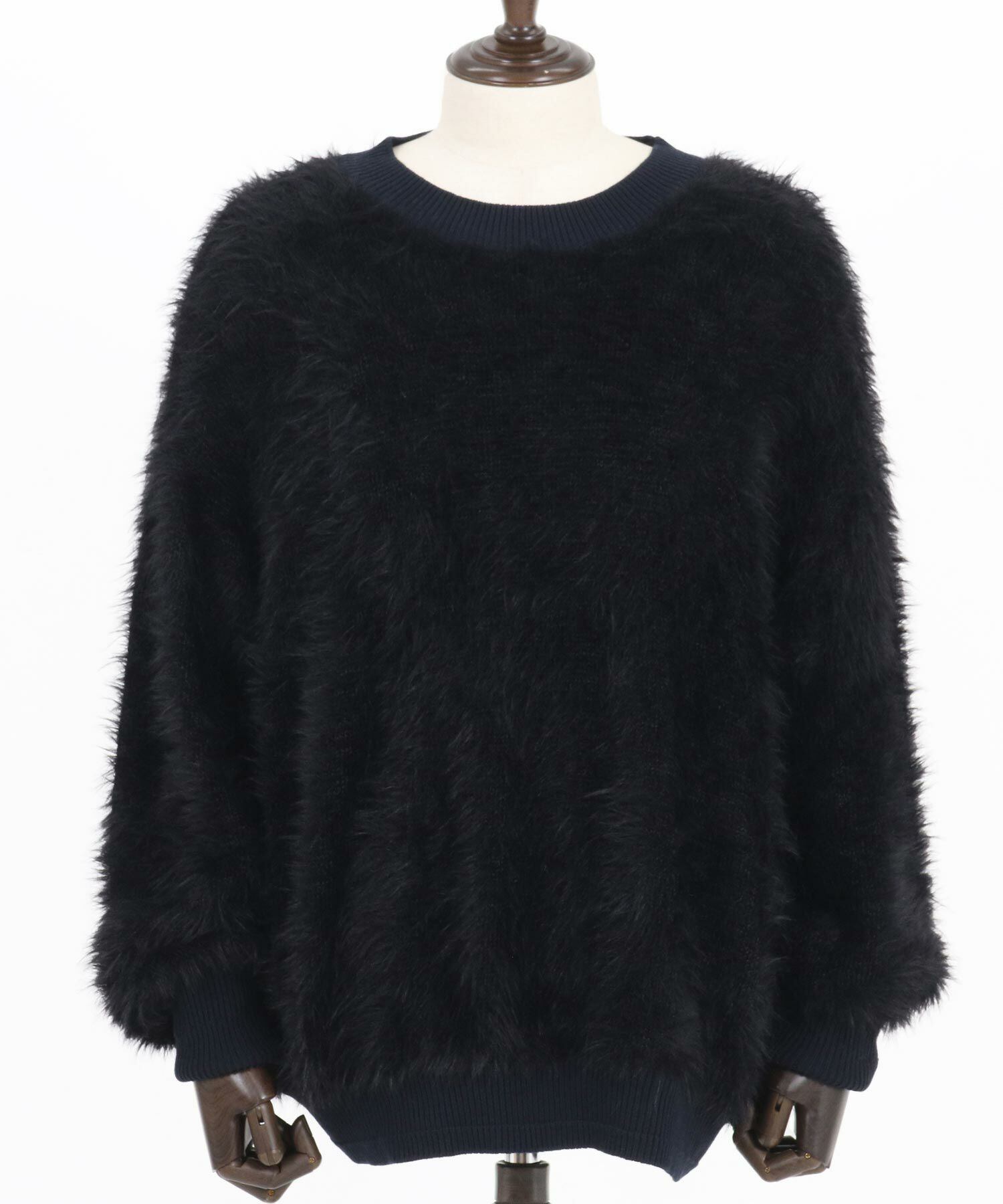 シャギーで毛足の長い糸を使用したプルオーバーニット。