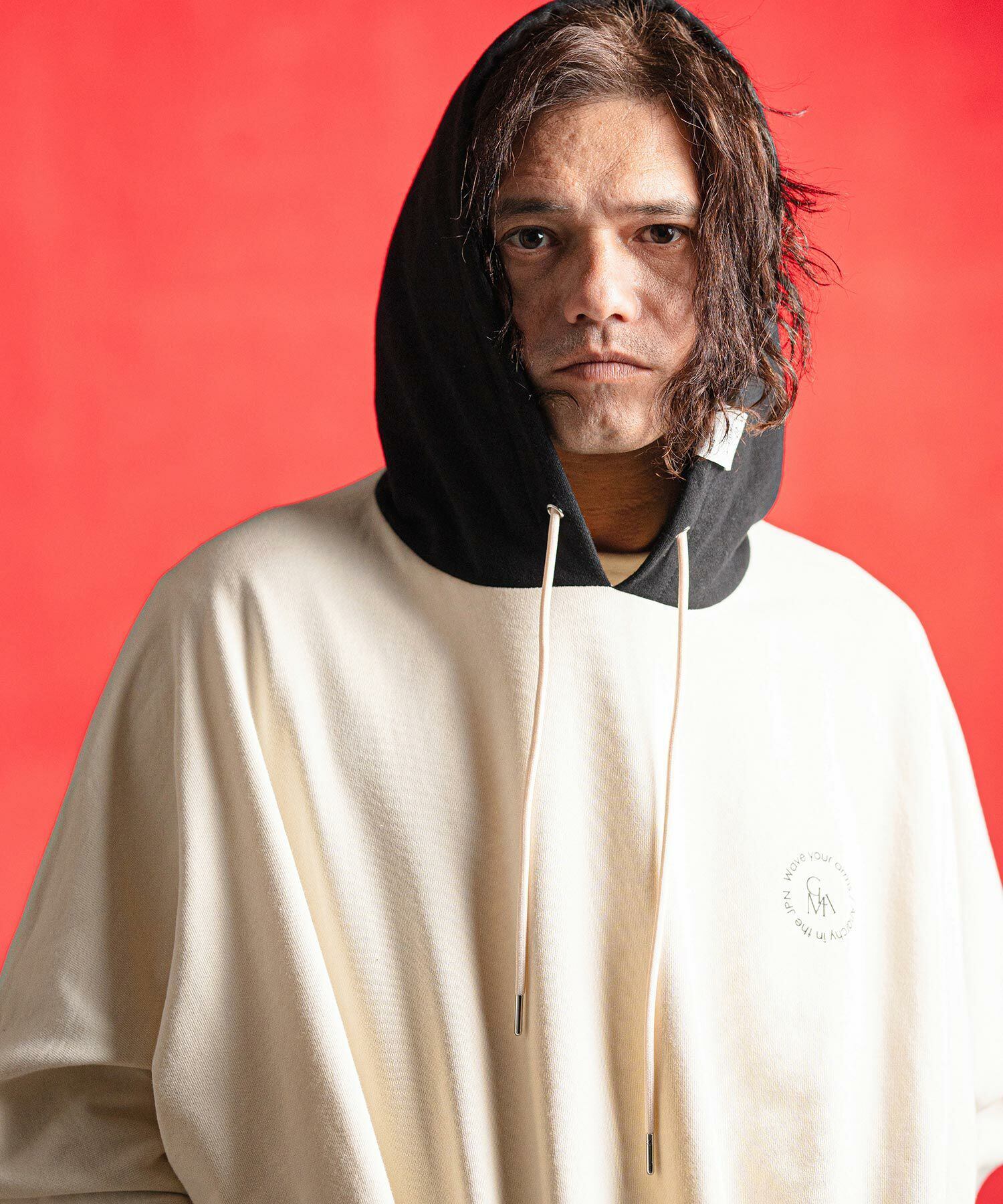 ゆとりのある身幅、ドロップショルダー、たっぷりとした袖周りに設定したオーバーサイズシルエットです。