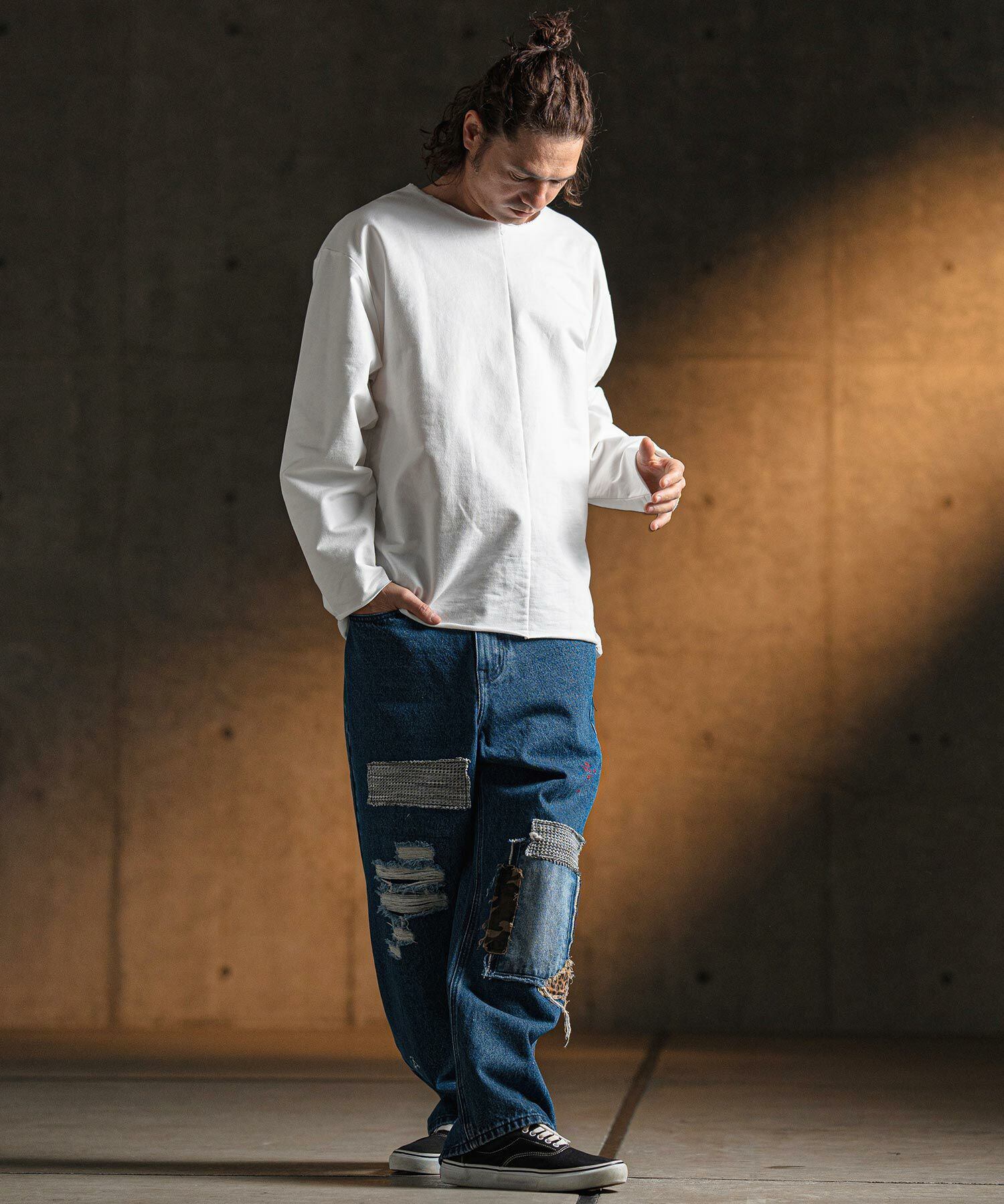 1本ステッチを入れたカットソオフ仕様ですのでほつれ続ける心配はなし。